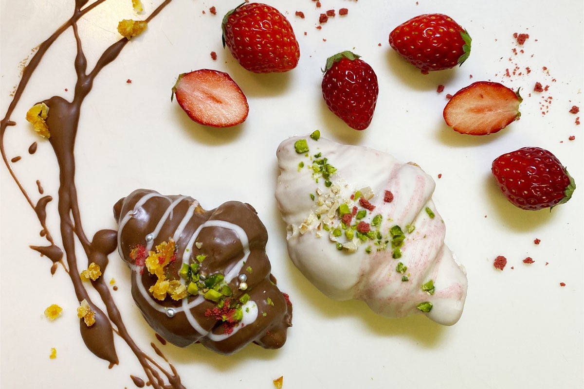 おしゃれで美味しい『クロワッサンラスク』も新登場!!サクサクのクロワッサンラスクに、ミルクチョコやホワイトチョコをコーティングし、ピスタチオやくるみ、オレンジピールや苺パウダーをトッピングした絶品のクロワッサンラスクです。見た目、味、食感、全て良しの商品となっており、komachiの目玉商品の一つとなっております!