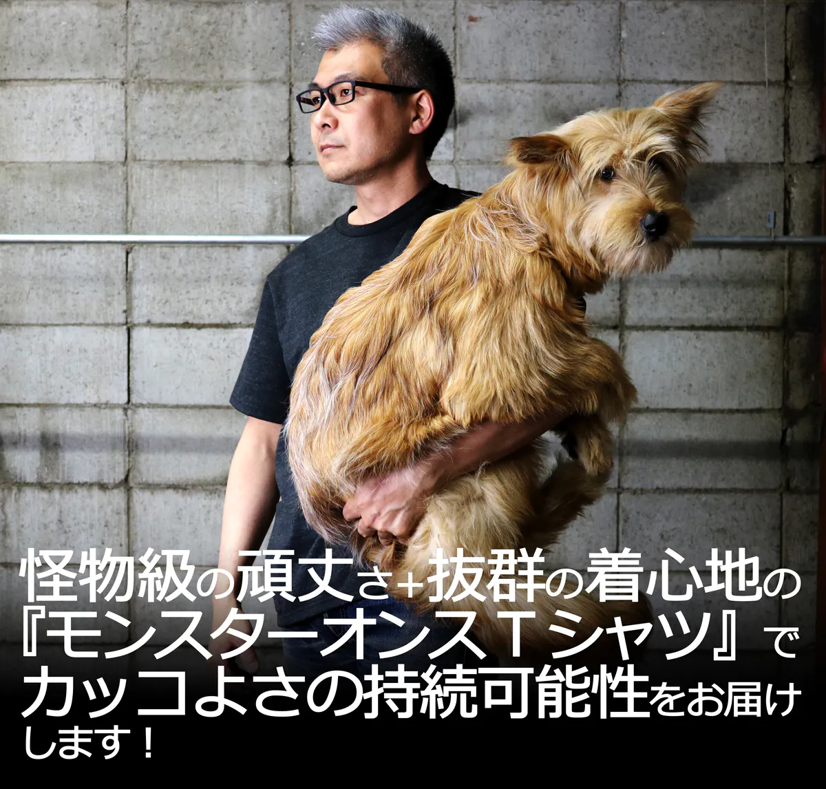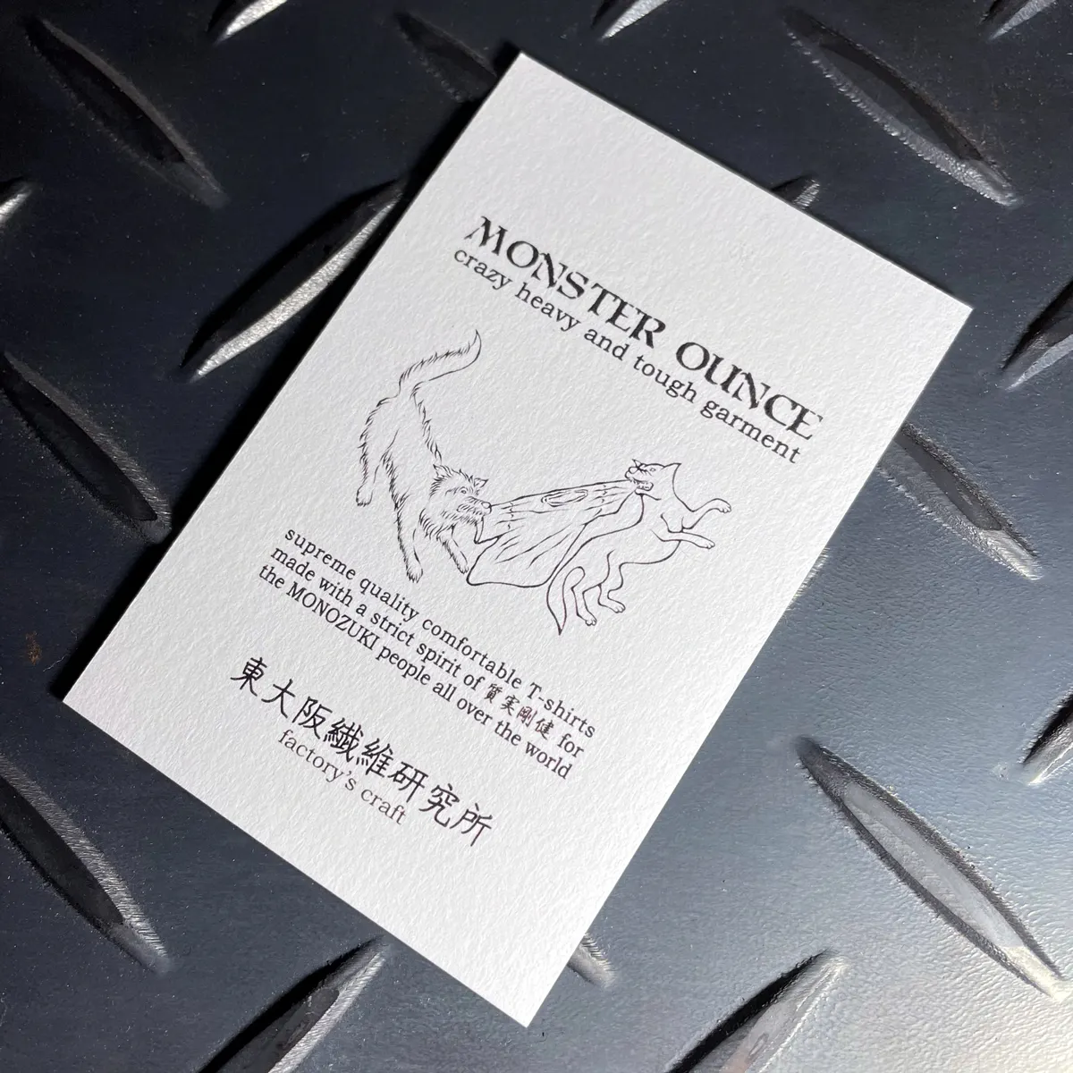 カッコいい服を着れば気分が上がるし自信も持てる。出来るだけ長くそれを楽しんでもらうために頑丈なTシャツを作ることが私たちの使命だ!と考えて『モンスターオンスTシャツ』を作りました。