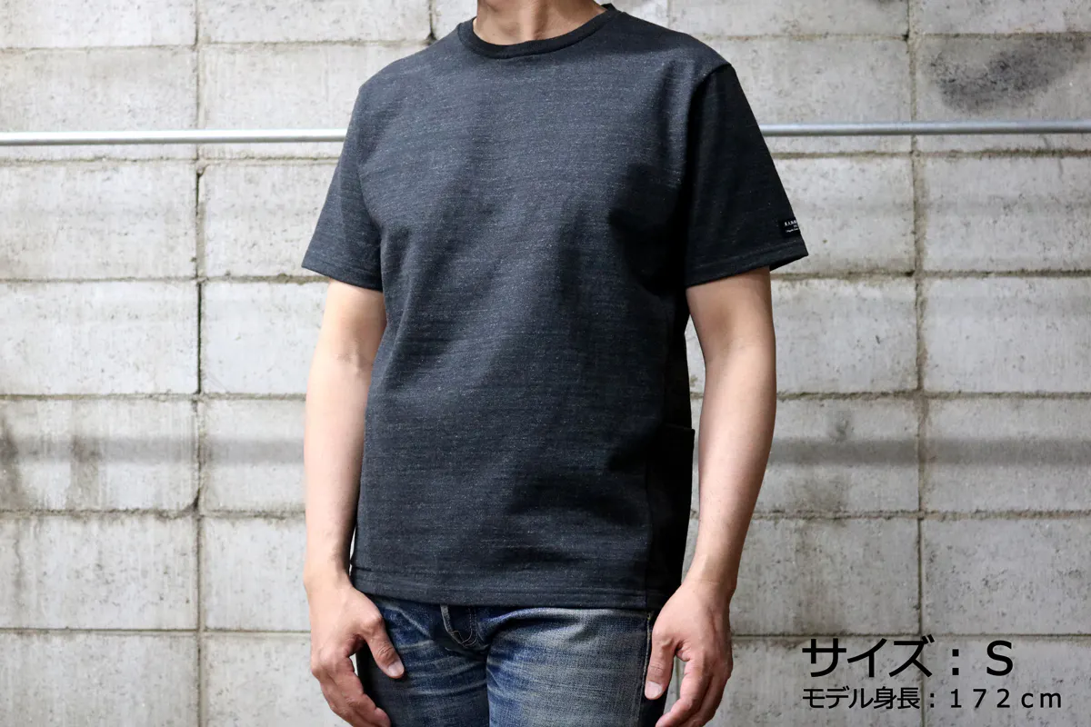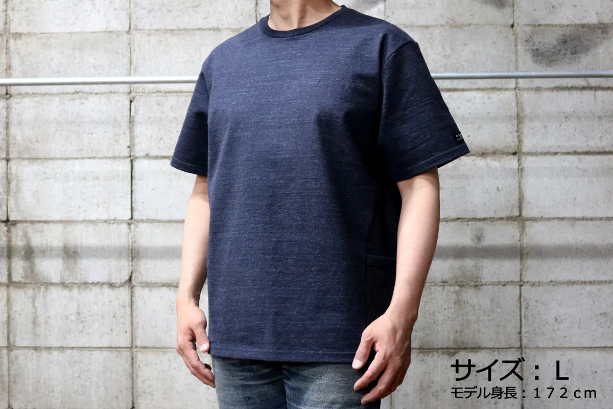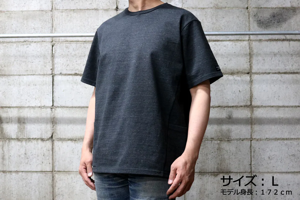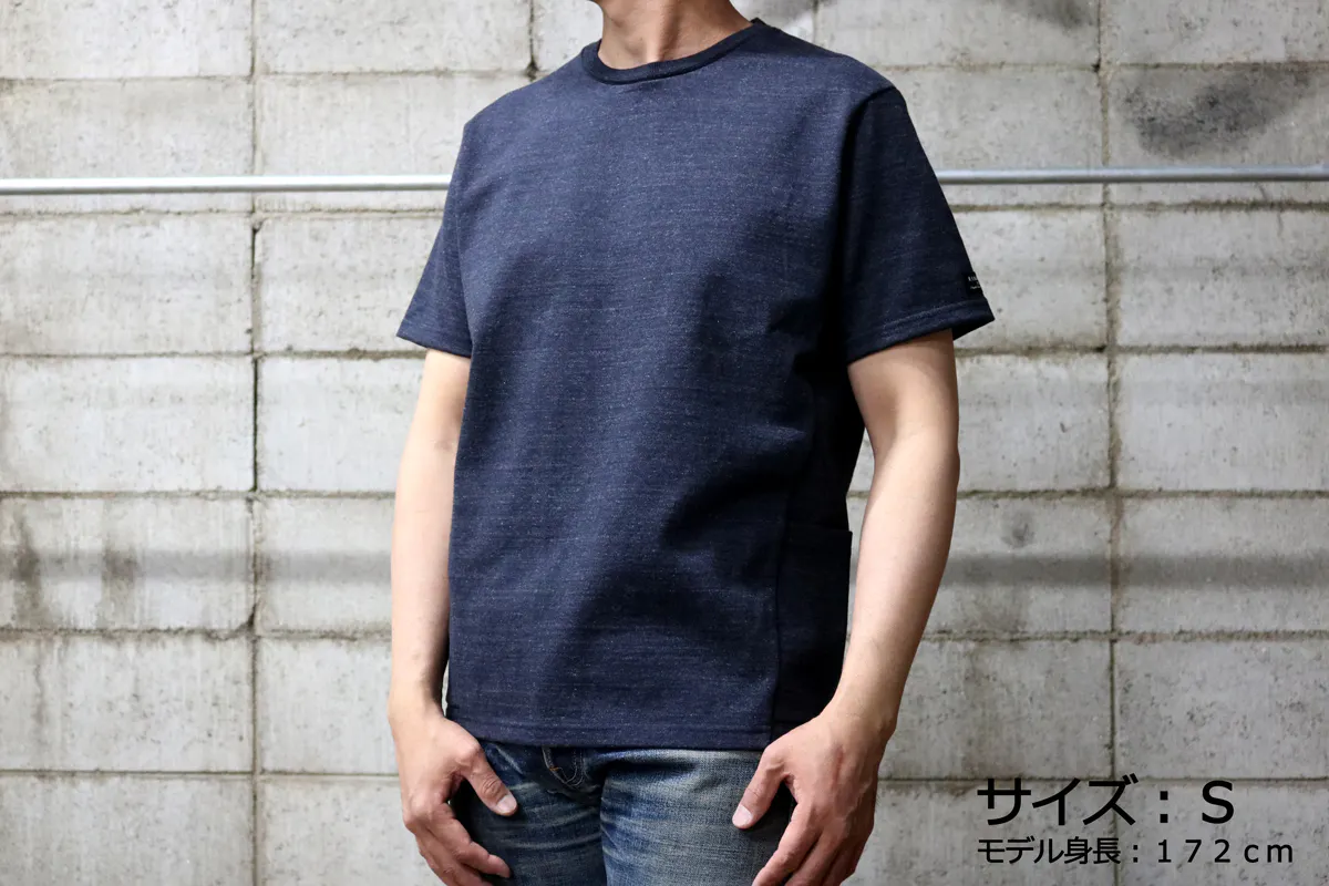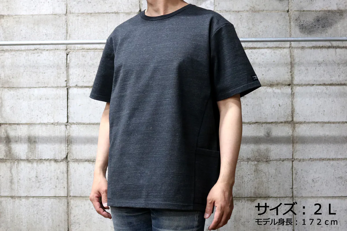 今回の『モンスターオンスTシャツ』には両脇に大きなポケットが付いています。このポケットにも13.5オンスの頑丈な生地を使用しているので、多少の重さのものを入れてもダラっと伸びたりしません。スマートフォンやカードケースはもちろん、スパナやドライバーなど少し重めのものでも問題なく収納できてとても便利です。