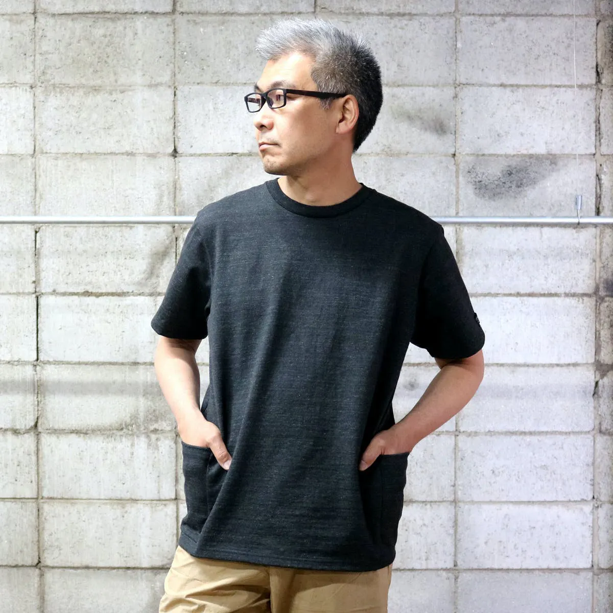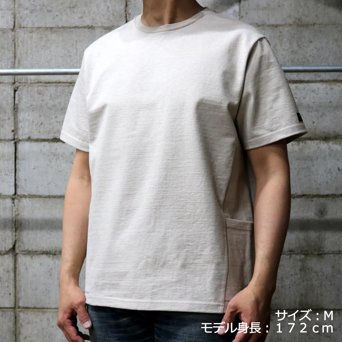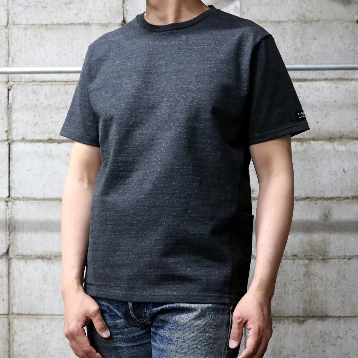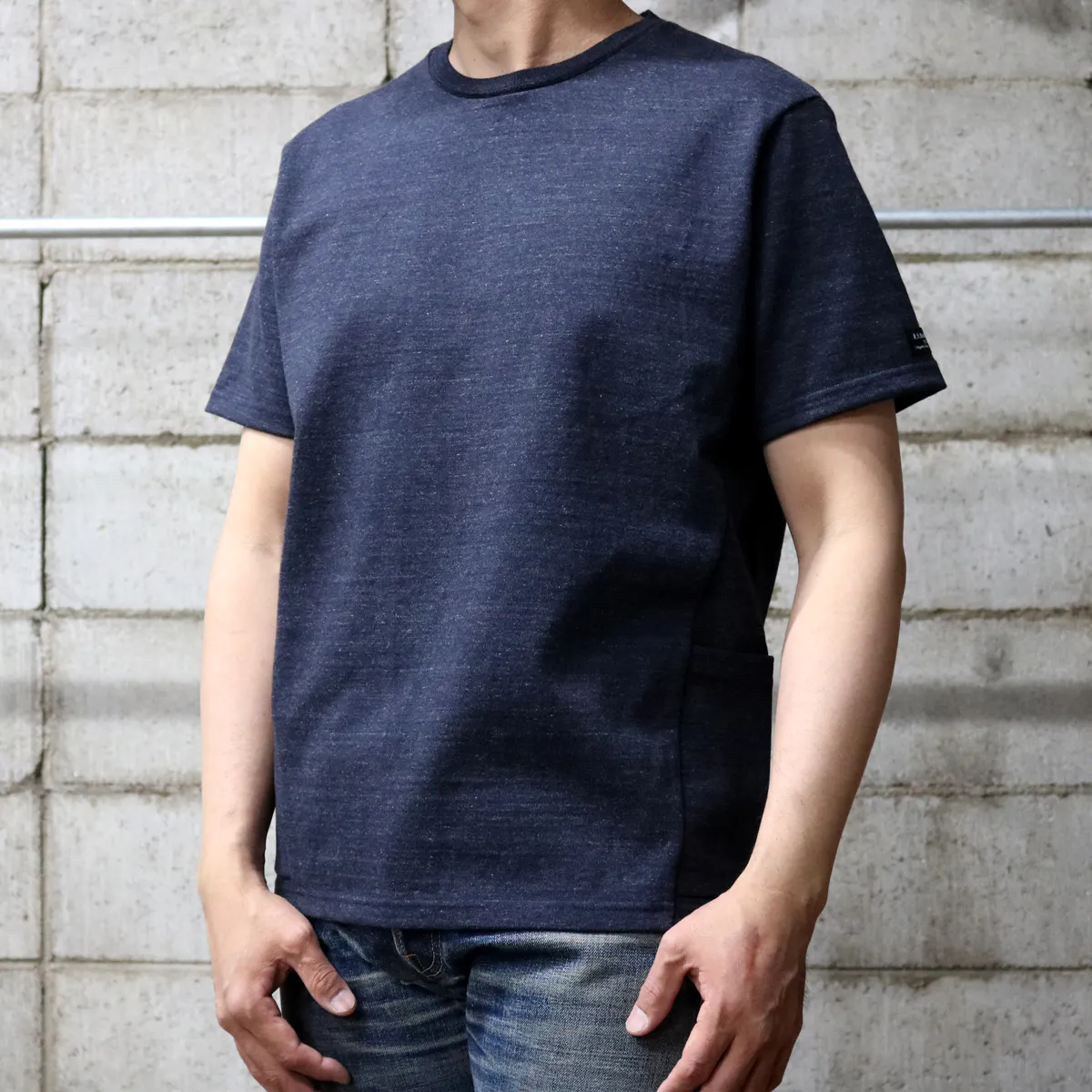 今回の『モンスターオンスTシャツ』には両脇に大きなポケットが付いています。このポケットにも13.5オンスの頑丈な生地を使用しているので、多少の重さのものを入れてもダラっと伸びたりしません。スマートフォンやカードケースはもちろん、スパナやドライバーなど少し重めのものでも問題なく収納できてとても便利です。