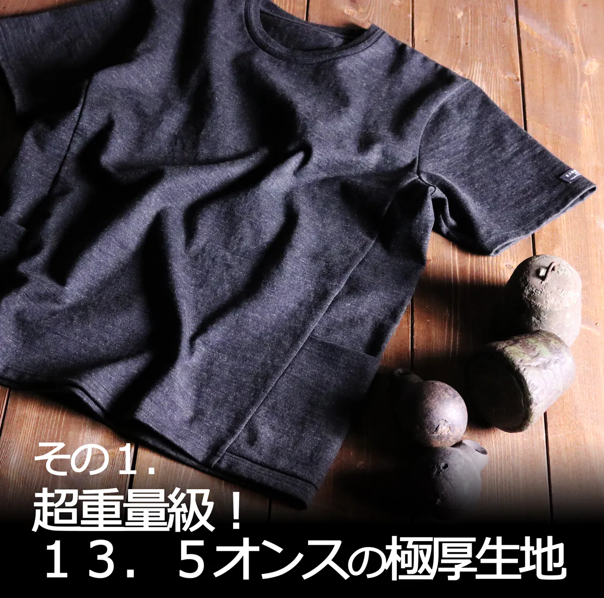 仕事、遊び、大人になった今こそ自分を魅力的にみせたい場面は多いはず。そこでこの「モンスターオンスTシャツ」をお勧めします。13.5オンスという超重量級の生地で頑丈さを極めつつ機能性とカッコよさを追求した自信作です。