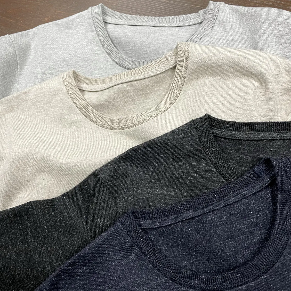 (写真上からグレー、ベージュ、チャコール、ネイビーです。)