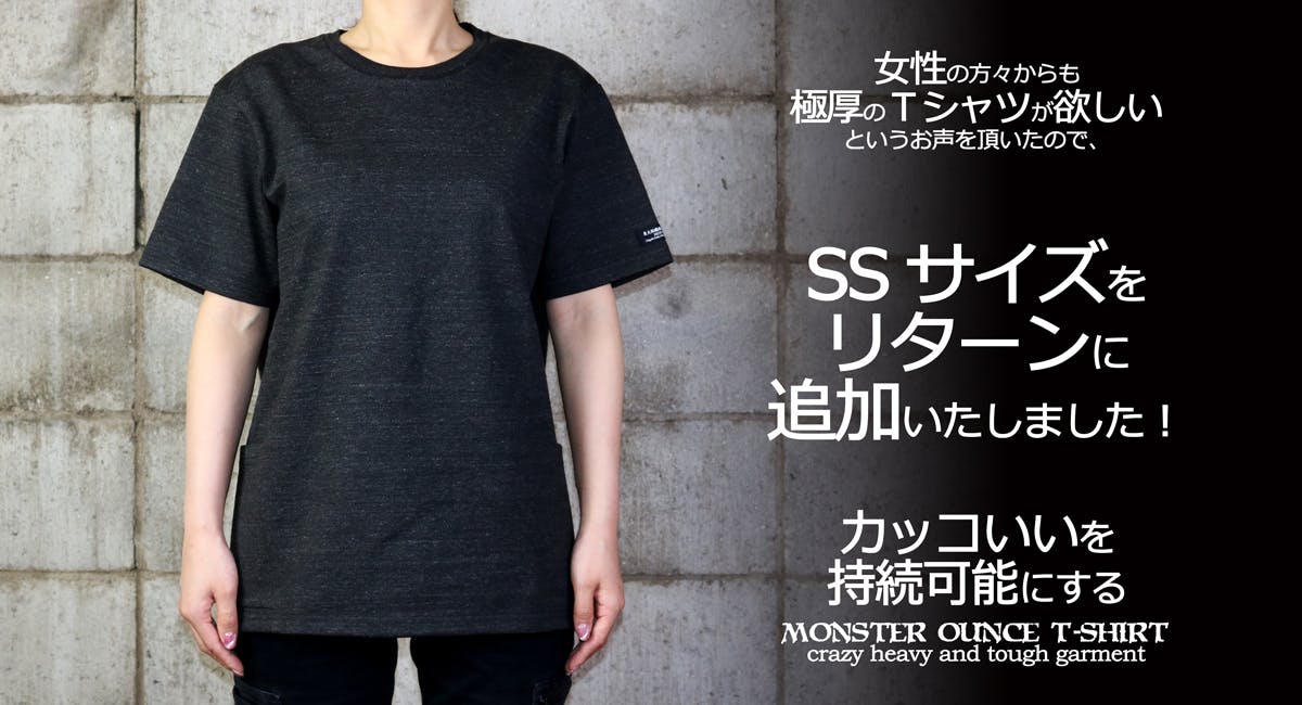 けれども、試作品をいろんな方々に手に取っていただいたところ、多くの女性から「このくらい厚手のTシャツが欲しかった!」というお声をいただいたので、公開後からSSサイズの試作に着手しました。