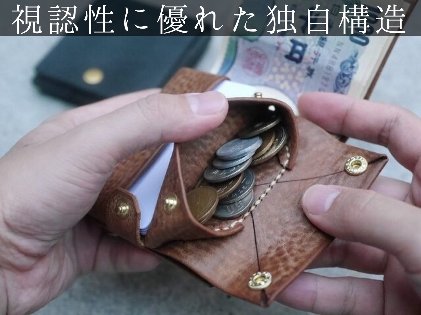 約0.9mm厚という、極薄革の貼り合わせにより実現した「薄くて強く高品質」まさにミニ財布の理想型【S】