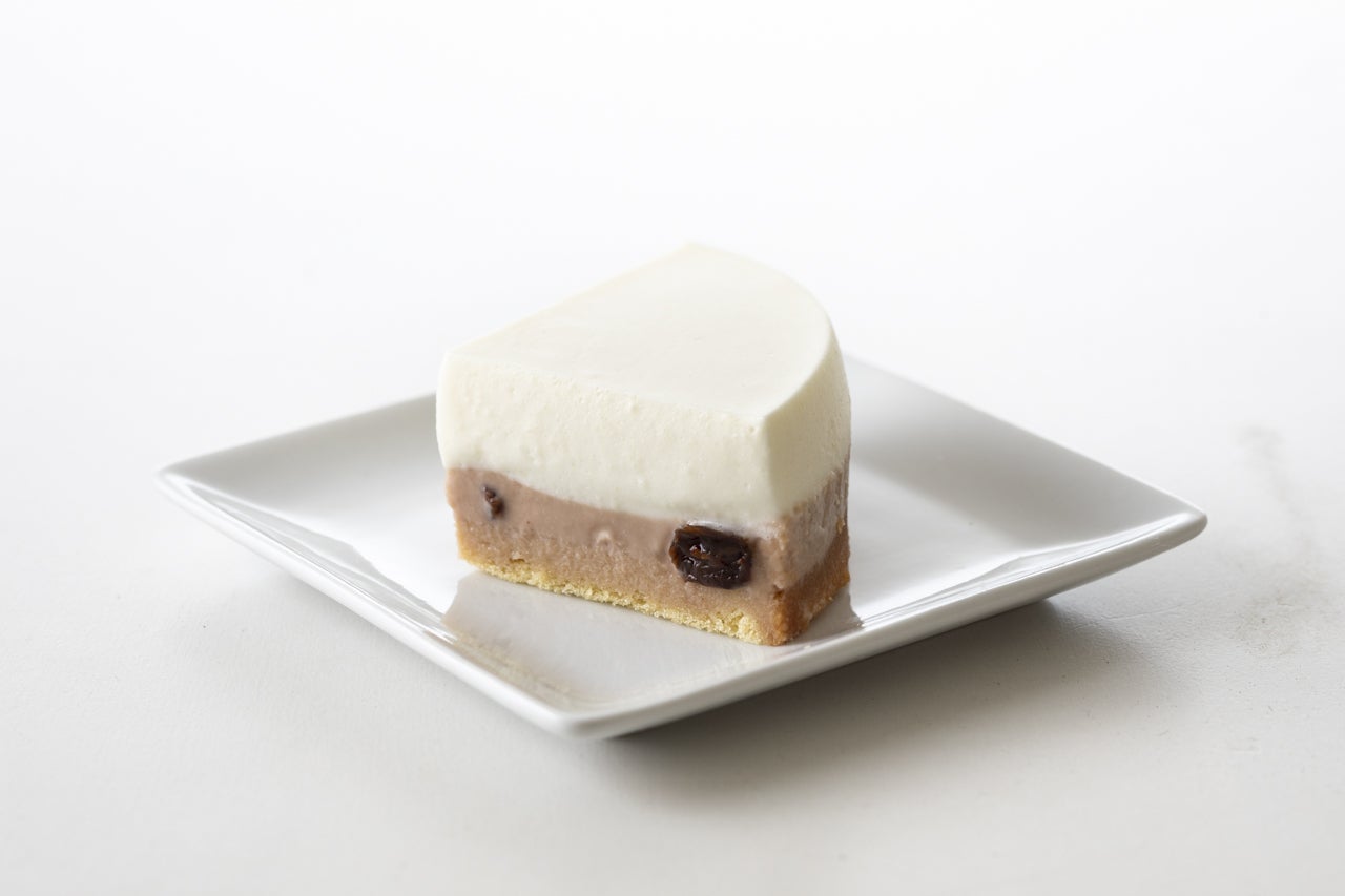 初めは、2種を混ぜて使うことからスタートしましたが、両方の良さがが死んでしまう結果に。マーブル状の生地も試しましたが、いまいちおもしろさに欠ける……。幾たびもの試作を重ねて行き着いたのが、赤のベイクドチーズケーキと白のレアチーズケーキ、それぞれのケーキを2層に重ねる、全く新しいタイプのチーズケーキでした。