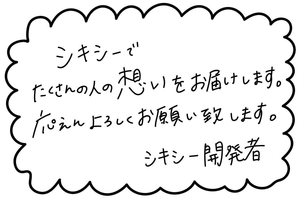 オンラインで寄せ書きができる色紙アプリ「シキシー」の開発者です。