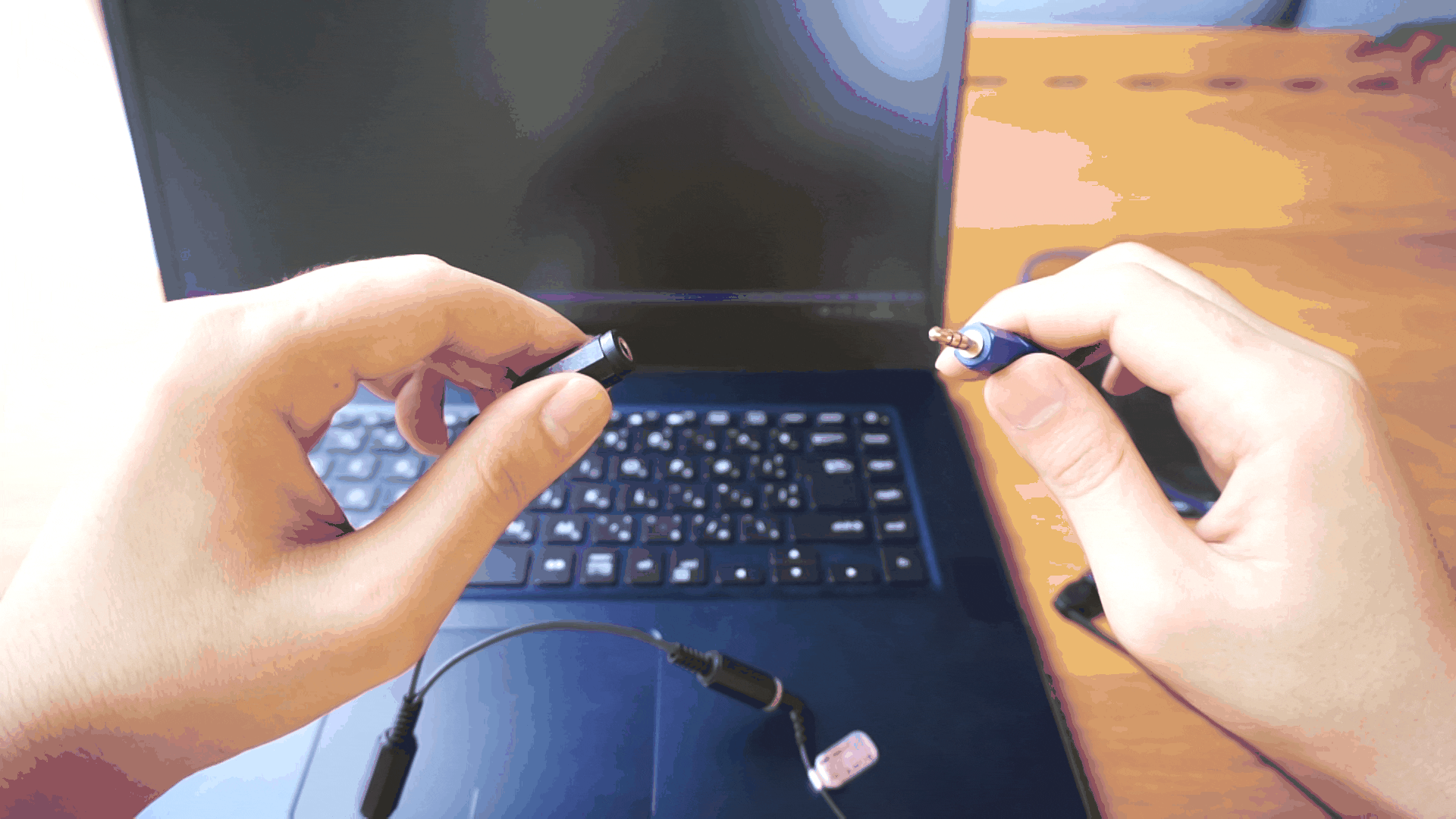 ステップ2:ステレオミニプラグ オーディオケーブルと接続