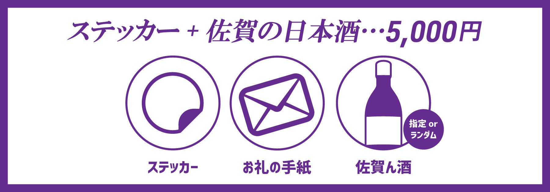 ステッカー、お礼の手紙、佐賀の日本酒のセットになります。
