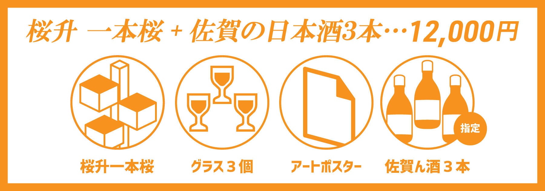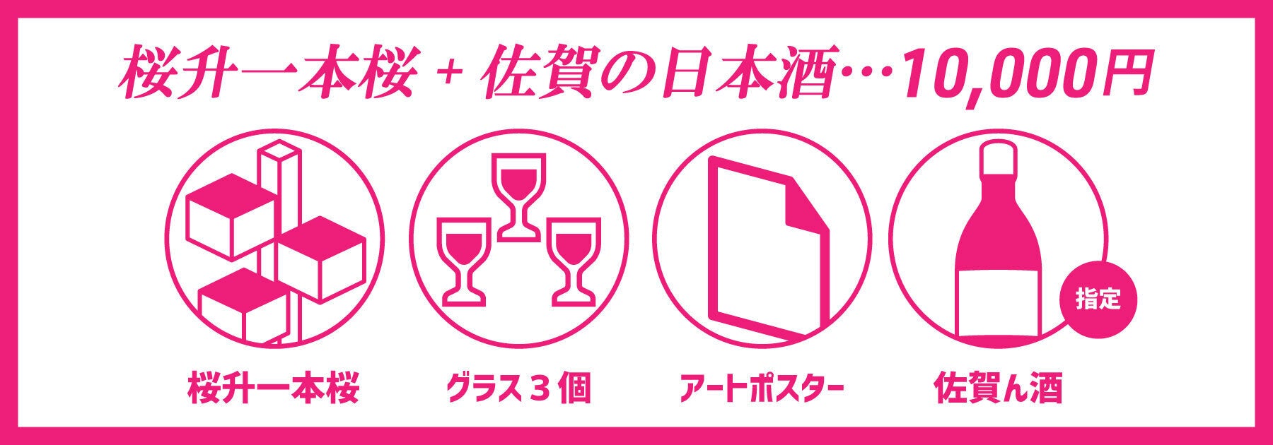 桜升一本桜、The SAGAグラス3個、アートポスター 、佐賀の日本酒のセットになります。佐賀の日本酒はコースごとの指定となります。