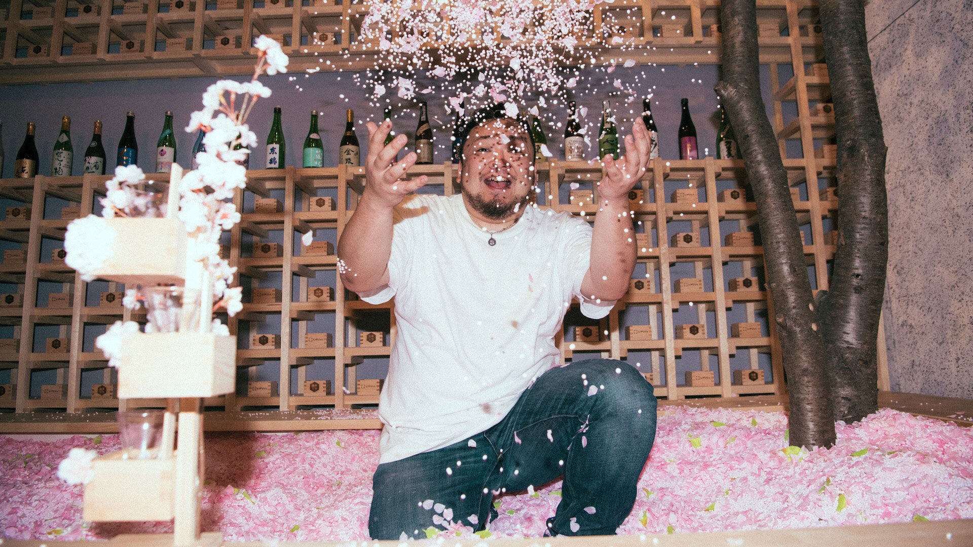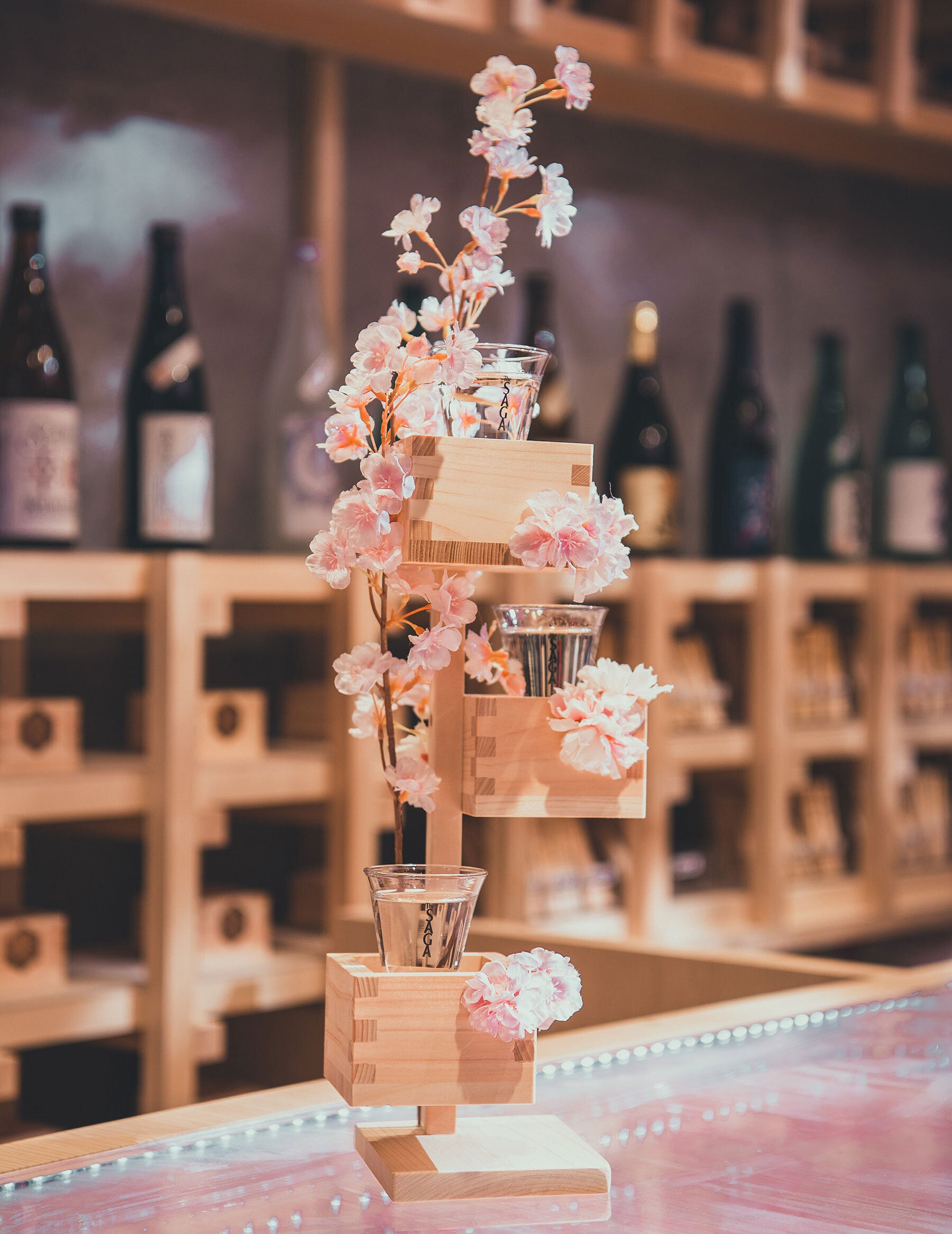 「by 佐賀」とついているように、佐賀県とのコラボレーションイベントで、佐賀の日本酒「佐賀ん酒」を幅広い人に体験して欲しいという想いから「体験型の花見」として企画しました。「花びらが舞い散る」と「チルアウト(ゆったりする)」ことを掛け合わせたコンセプトで、インドア花見や、美味しい佐賀の日本酒、名産のおつまみを楽しめる春の期間限定のバーです。