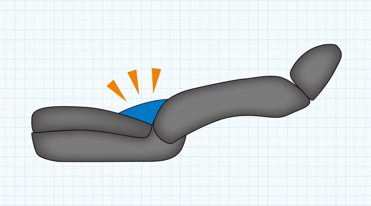 A. シート自体も曲線でありますので、クッションを使って直線のフラットにする訳ではありません。このクッションを当てることでこれまで浮いていたことによる腰への負担を軽減することを目的としています。