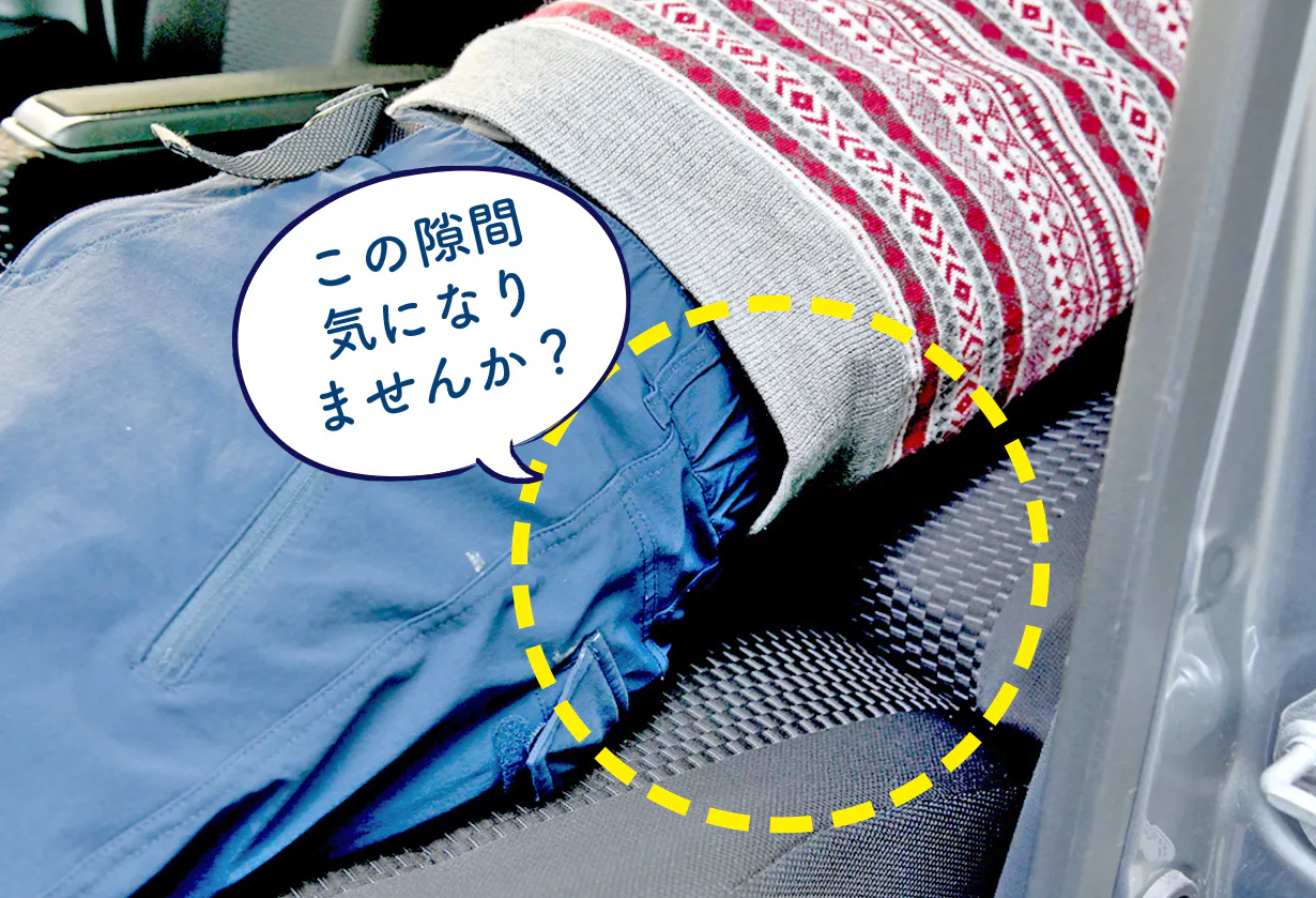 そのためシートを倒して休もうとしても、腰が宙に浮いていることで負担がかかり休んでいるようで腰は休めていません。