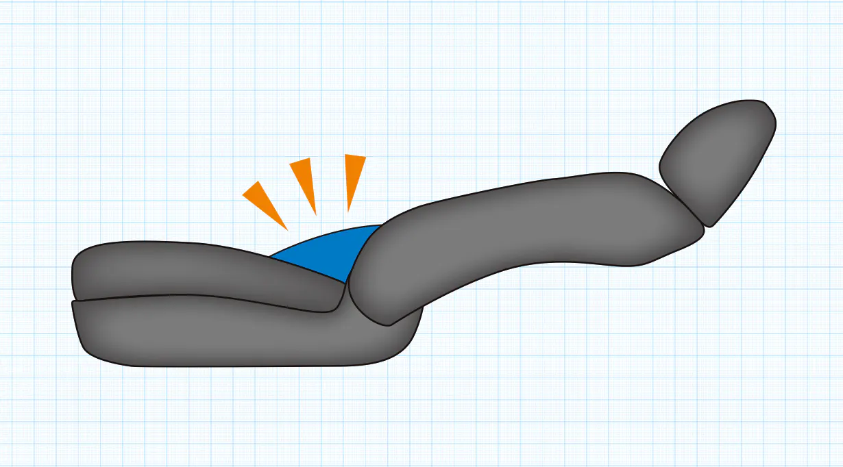 リクライニング時の段差をなくして腰を支え圧力を分散、体勢が定まって快適に車内でしっかり休息をとる事が出来ます。
