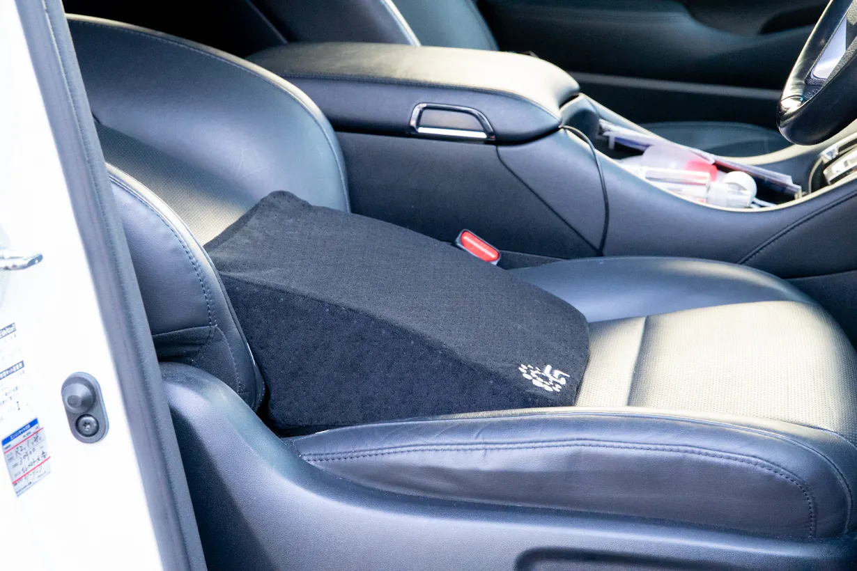 A. いえ、このクッションはリクライニング時のシートの形状を元に設計していますので、運転時のクッションとしては適していません。
