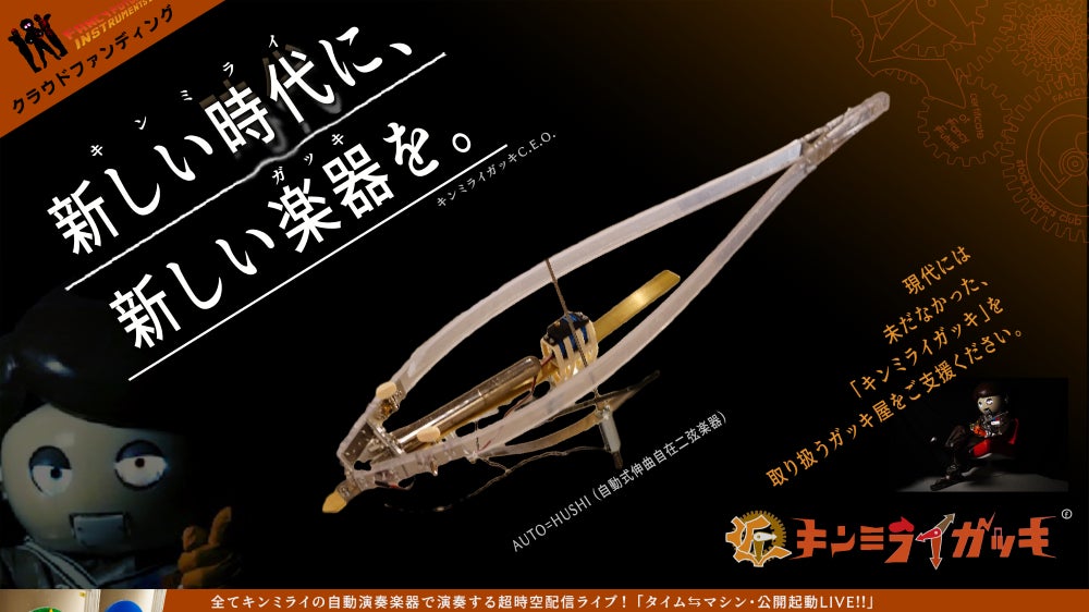現代人の諸君、我々は現代に未だない新たな楽器=「キンミライガッキ」を提案・発明する時空企業だ!