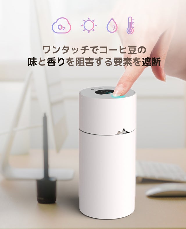 ワンタッチで強力真空保管!6ヶ月以上新鮮で美味しいコーヒーの秘密カプセル!ジニー