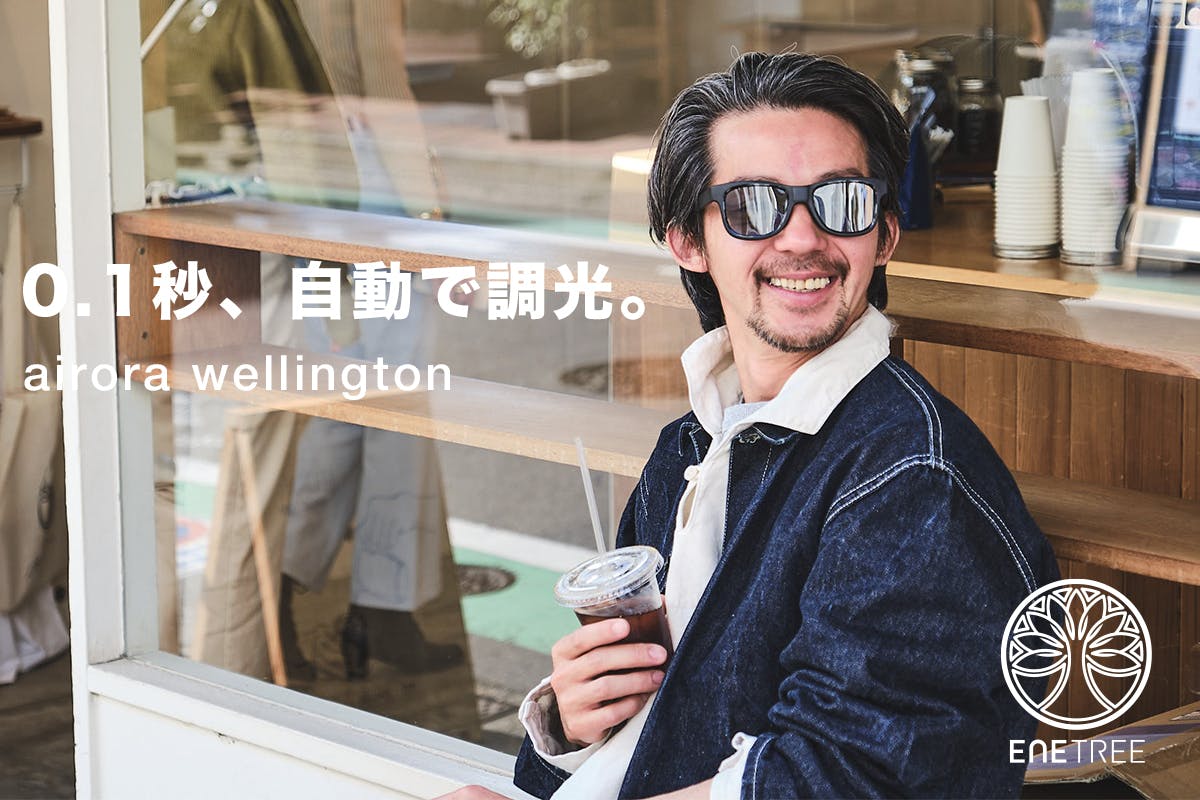 サングラスのレンズの濃淡をその時の環境に合わせて自動で切り替えてくれる「電子フレキシブル液晶調光フィルム」を搭載した【ENETREE(エネツリー)】のアイウェアたち。その最新モデルとなる【airora wellington】が登場!“0.1秒、瞬間自動調光機能”はそのままに、よりライフスタイルに馴染むデザインとなりました。