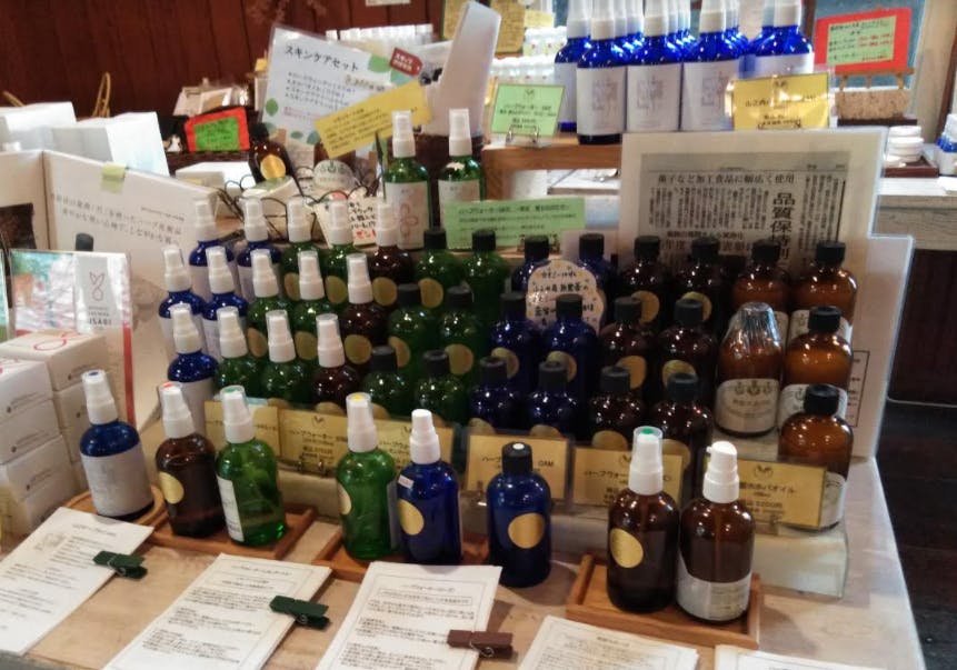 農家レストラン“且緩々”では香寺ハーブ・ガーデンのハーブ製品を販売しています。ハーブも野菜と同様に人の健康や美容を向上させる成分があり、お客様に進めています。