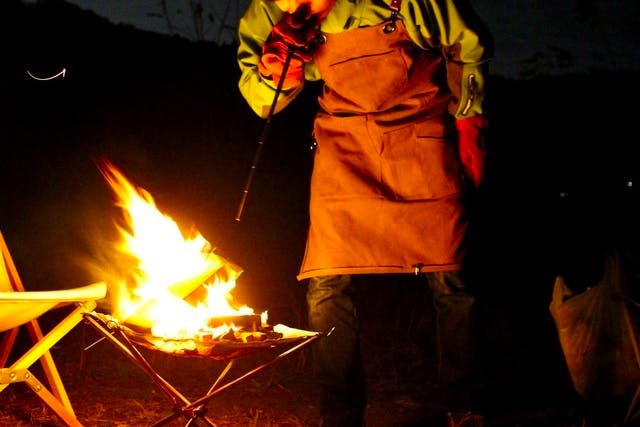 エプロンとしての使用をしない時は、そのまま置いておけば散らかりがちな薪の収納場所としても大活躍!