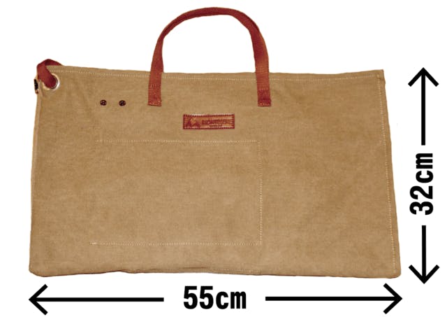 キャンプ大好きな開発スタッフが実際に使用し、木くずが残っても服に付かないよう、バッグの内側はエプロンにした時には外側になるように設計しました。