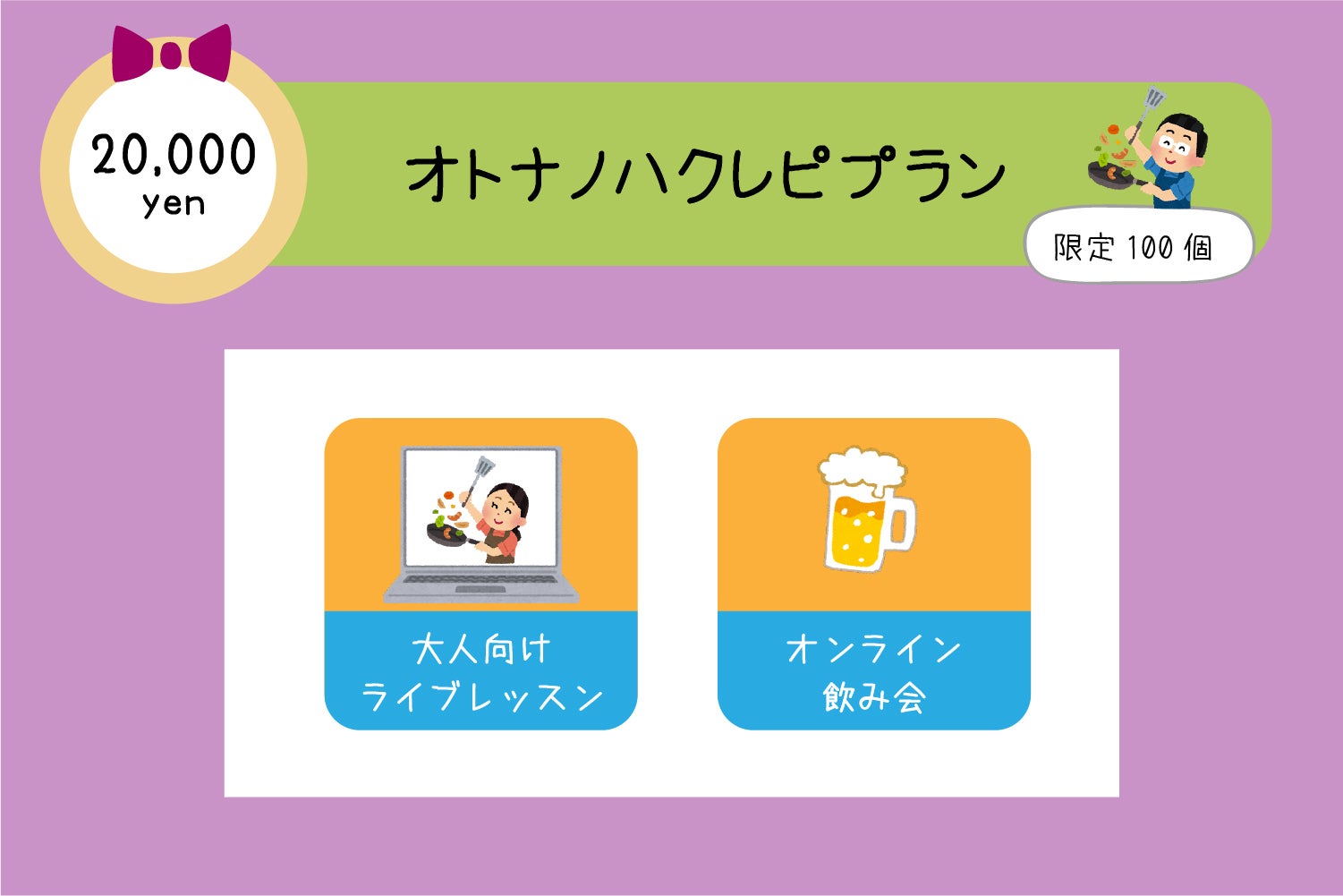 大人でもハクシノレシピのレッスンを受講できるプランです。ハクシノレシピは子ども向けのサービスですが、今回のクラウドファンディング限定で、大人向けにライブレッスンを開催します。