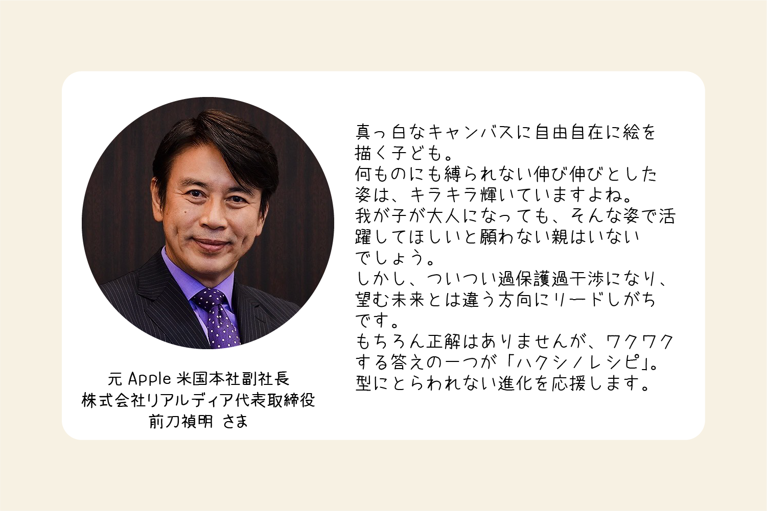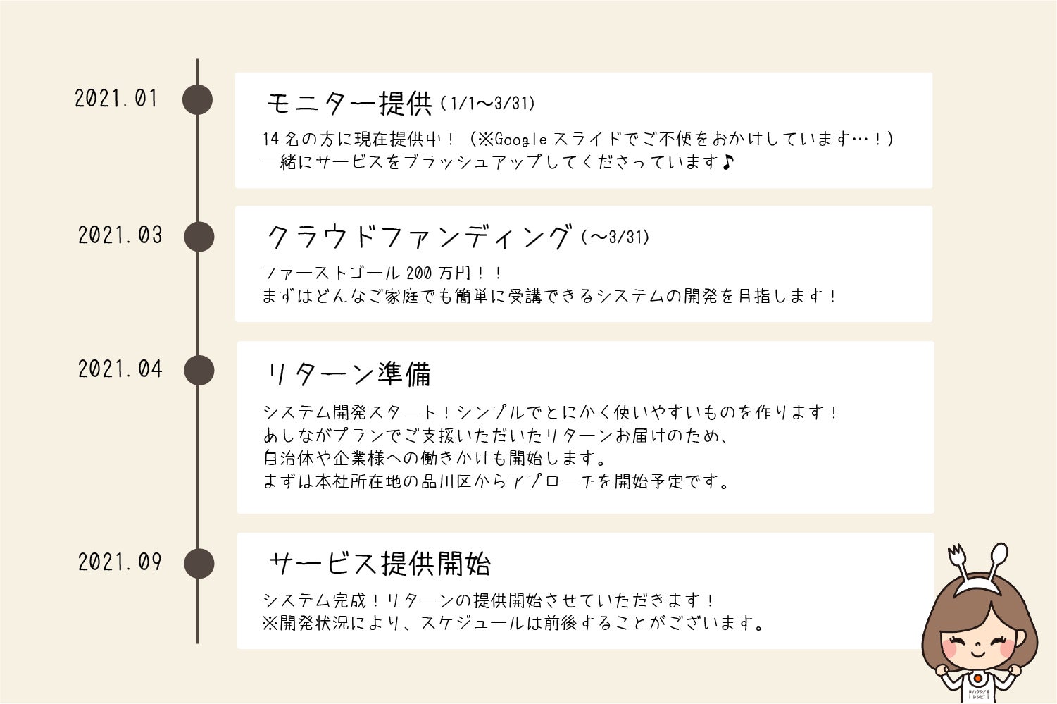 今回のクラウドファンディングに挑戦する目的は、2つあります。1つ目は、受講システムの開発資金を調達すること。そしてもう一つは、ハクシノレシピをより多くのご家庭にお届けする枠組みのきっかけを作ることです。
