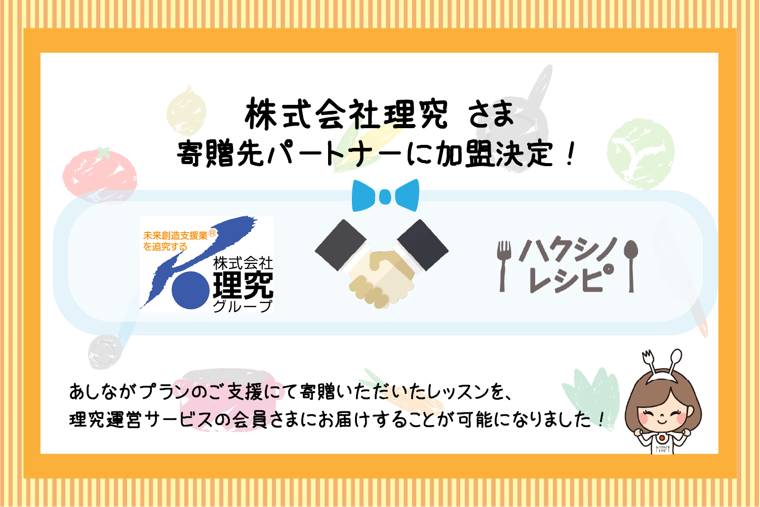 【ハクシノレシピ #6】 寄贈先パートナーに「株式会社理究」さまの加盟が決定!