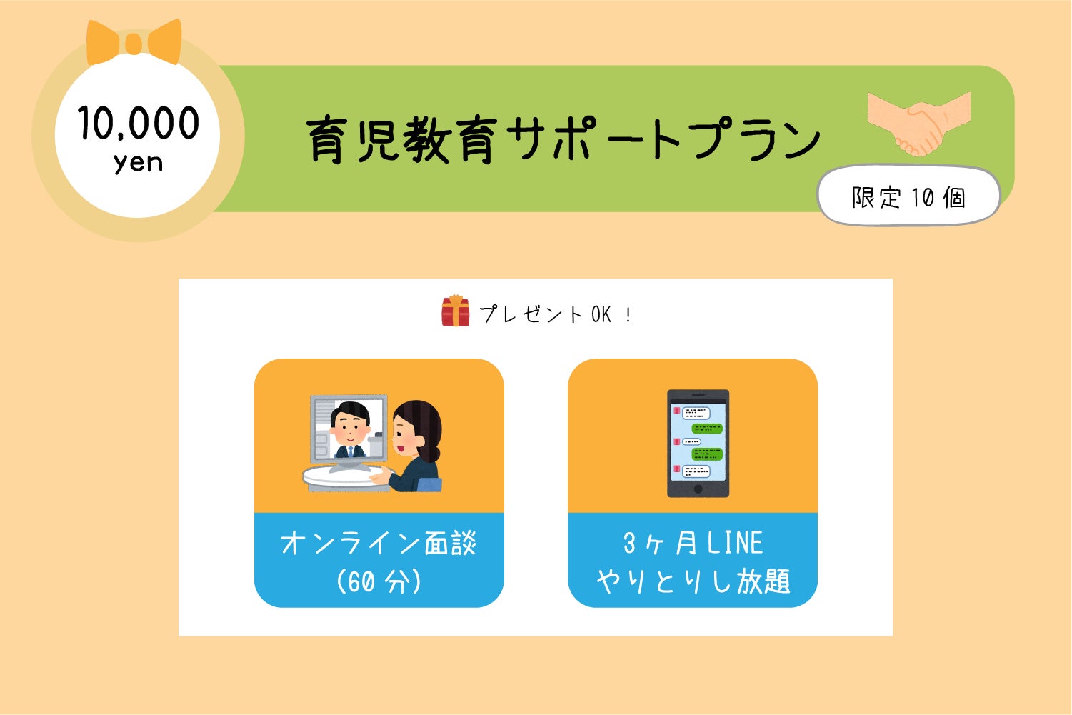 元幼児教室講師で育児セラピスト2級、食育インストラクター、フードコーディネーター3級の資格を保持するハクシノレシピ代表の髙橋が、育児や教育についてサポートさせていただくプランです。
