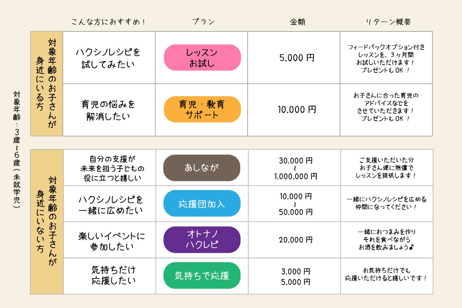 ハクシノレシピを一緒に広めていただく仲間として、公式応援団に加入いただくプランです。