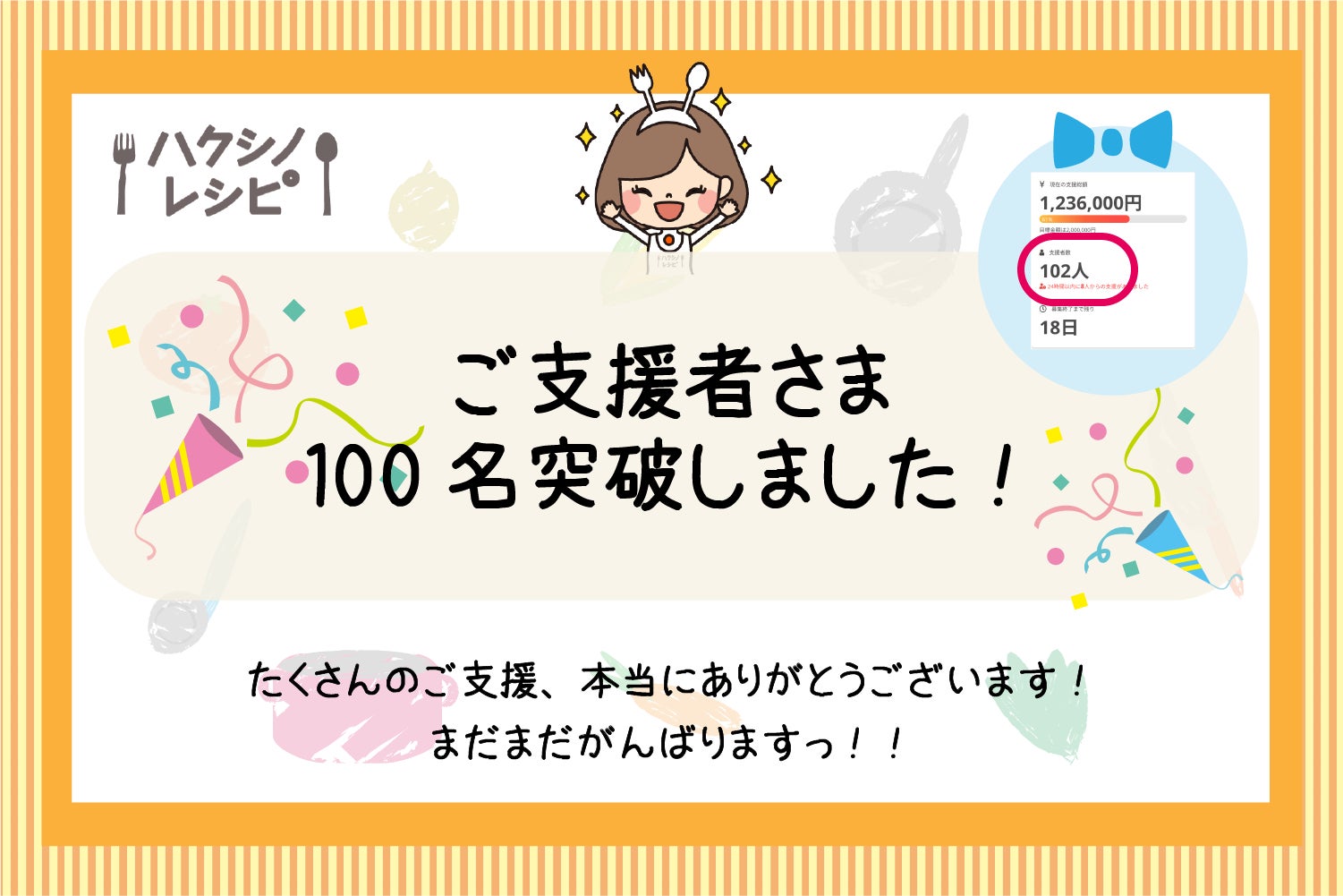 【ハクシノレシピ #4】ご支援者さまが100名を突破しました!