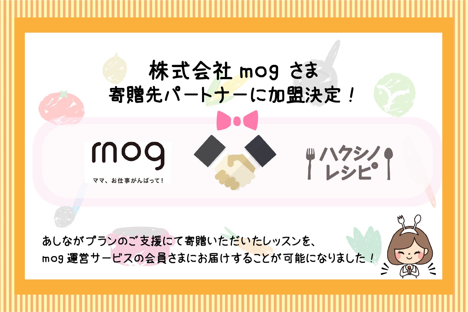 【ハクシノレシピ #5】 寄贈先パートナーに「株式会社mog」さまの加盟が決定!