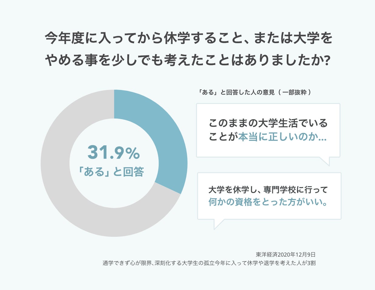 通学できず心が限界、深刻化する大学生の孤立今年に入って休学や退学を考えた人が3割