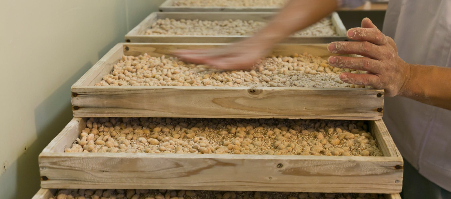 職人の心意気が麦の一粒一粒に入っている手麹、二段仕込みにこだわる