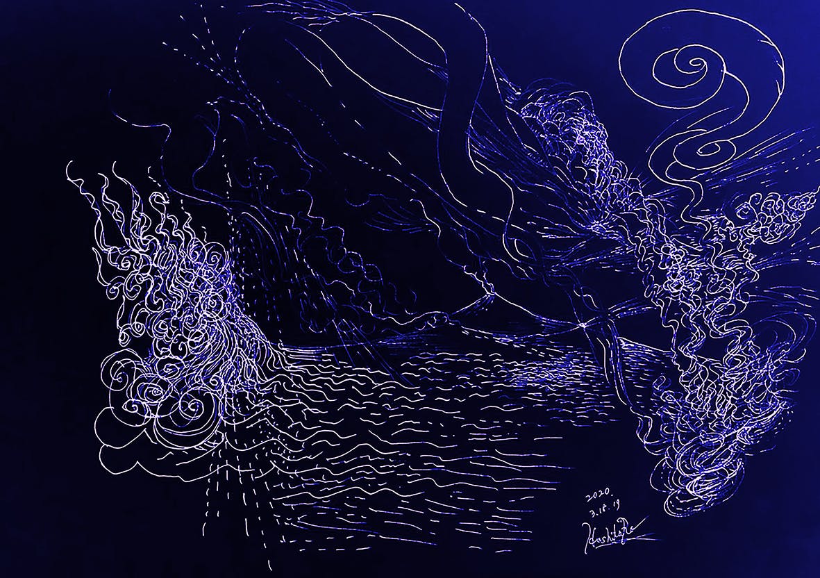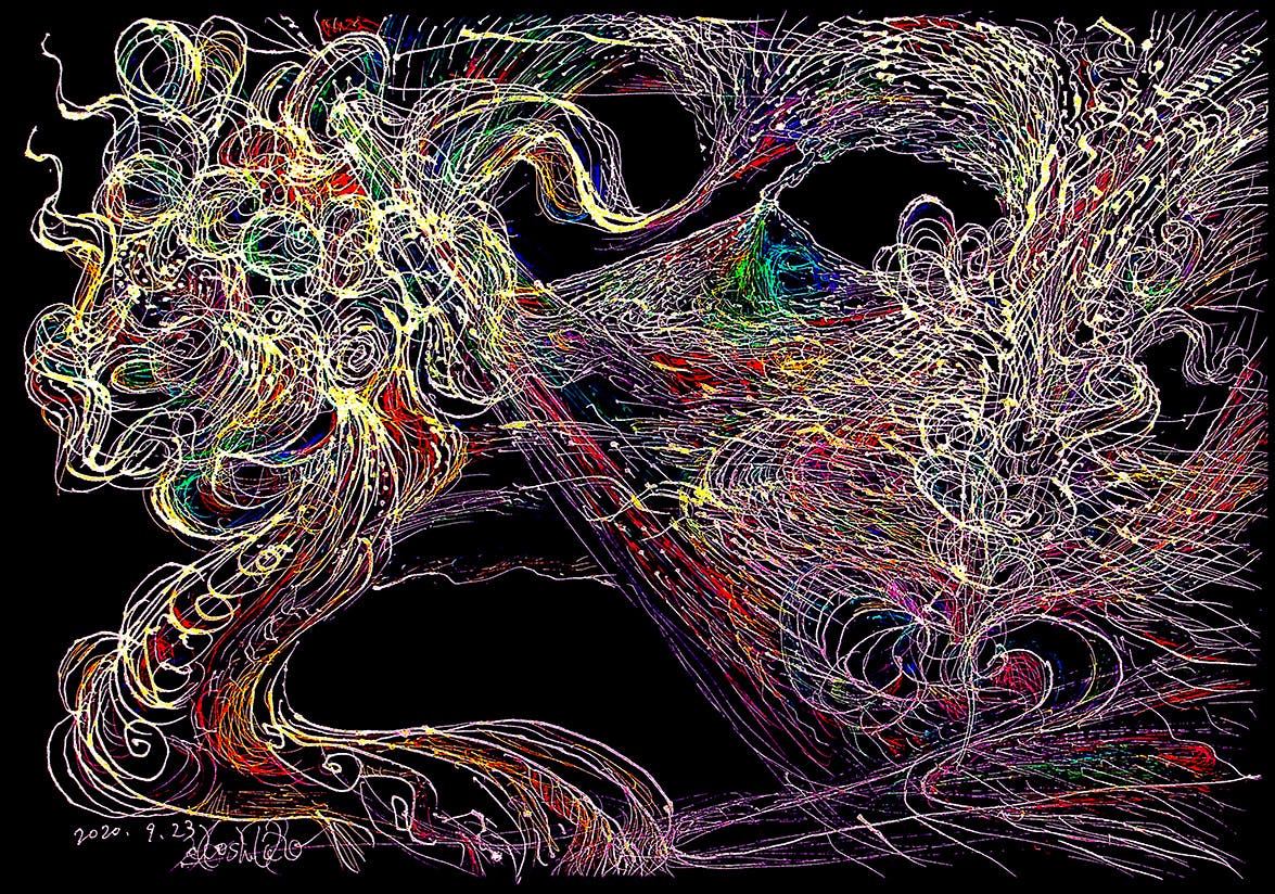 私は、毎日の暮らしなかで、日記のようにしてこのような線描画を描いています。“夢見”のような、“半自動書記状態”で描かれるこれらの絵を、私は「アストラル・アート(Astral Art)」と呼んでいます。