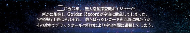 急遽、物理学者や数学者の他、レコードに詳しい者達が集められ、ボイジャーの修理・Golden Recordの回収のため宇宙に旅立った。