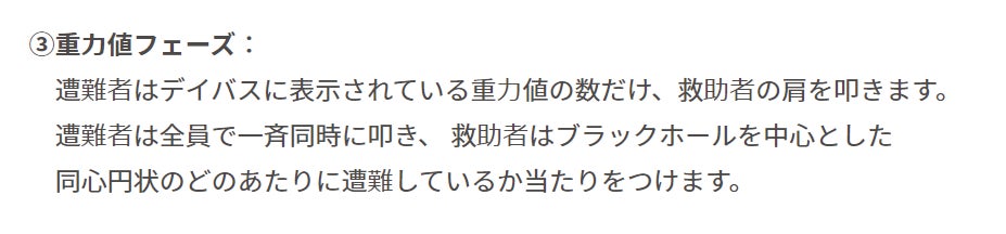 遭難者は全員で一斉同時に叩き、 救助者はブラックホールを中心とした