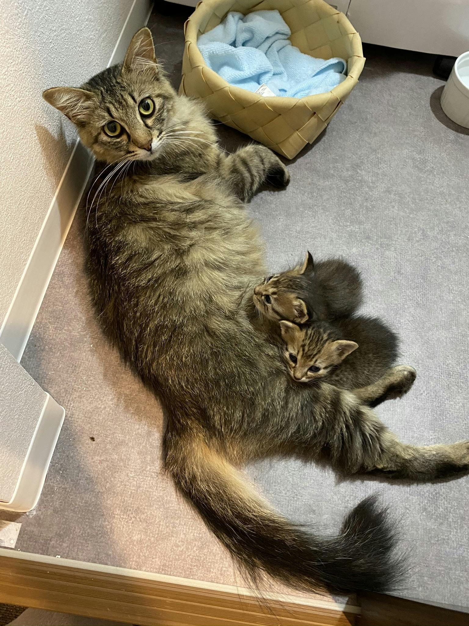 成猫は収容されるとすぐ殺処分対象らしいのですが子供がいるので保留されていたそうです。