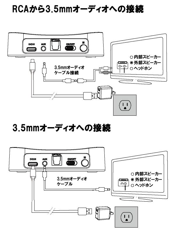 途切れにくいBluetooth送信機になっています。3.5mmAUX・光デジタルに対応しています。