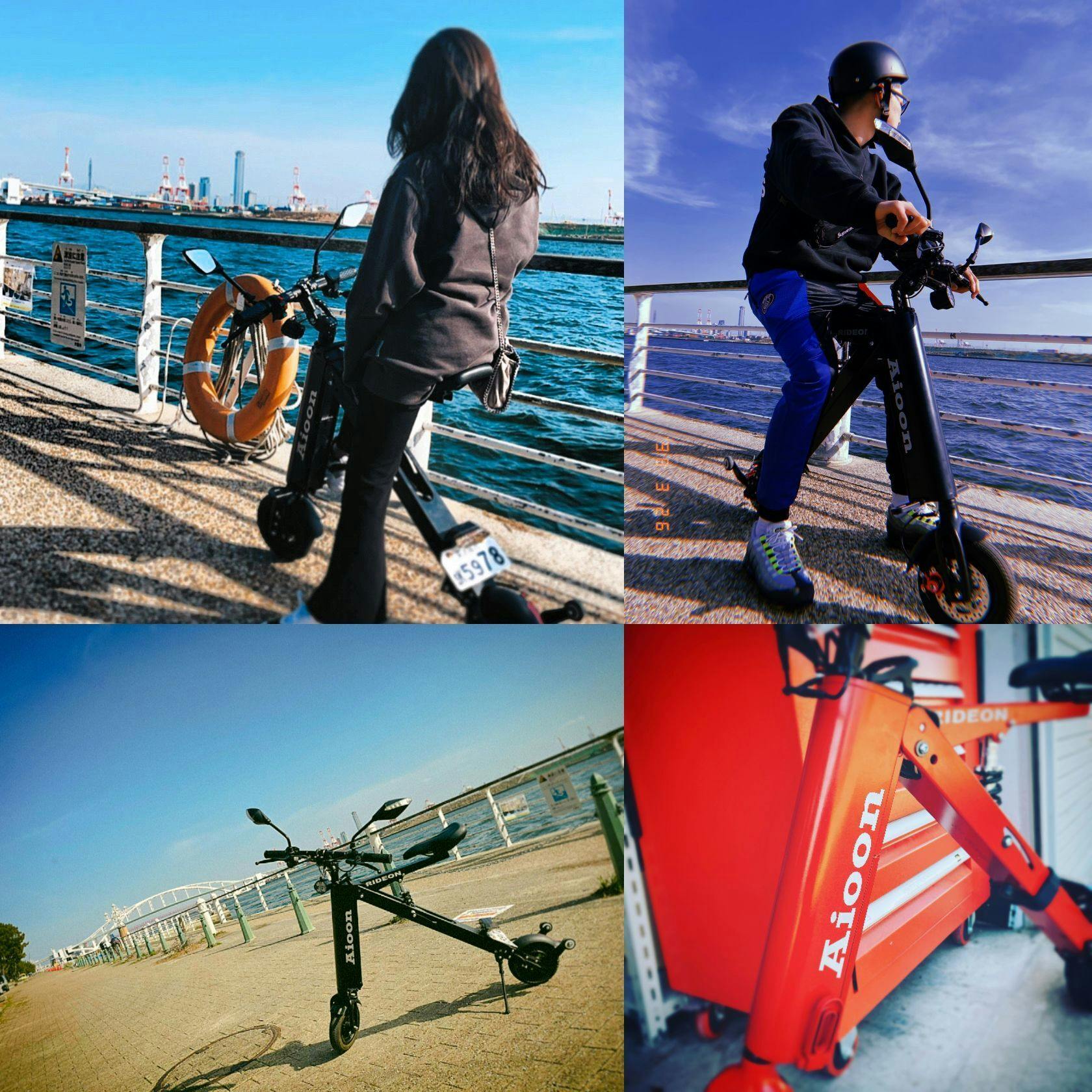 Aioon(アイオーン)はギリシャ語で、時間の日々の生活を劇的に変える、どこに行くのも一緒に行けるバイクがAioonです。Aioonのコンパクトさは、車での移動、電車での移動、移動先でのタクシーの使用など様々なシーンでも活躍します。車に乗せて、移動先で乗ることも電車で移動して、目的地で乗ることもAioonは実現しました。他には無いスマートなデザインかつスタイリッシュさ