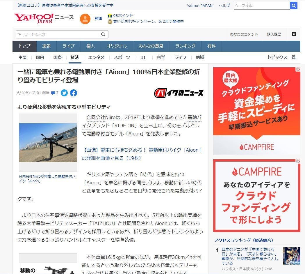 移動の常識を変えるEVバイクが新登場 その名もAioon(アイオーン)
