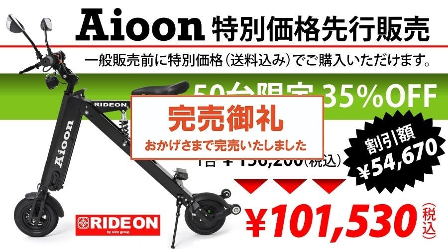 【Aioon】RIDE ONより常識外れなEVバイクが新登場!