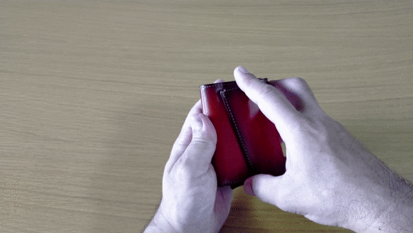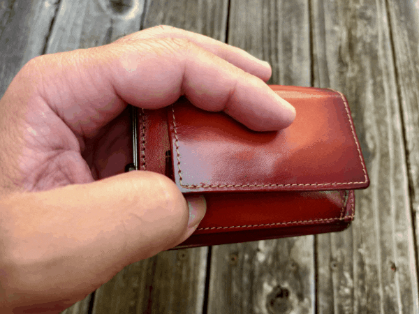 更に、日常生活で使ってみて、小銭入れの使い安さを、そして何よりもワンプッシュでカードが取り出せる事が便利だと強く感じました。