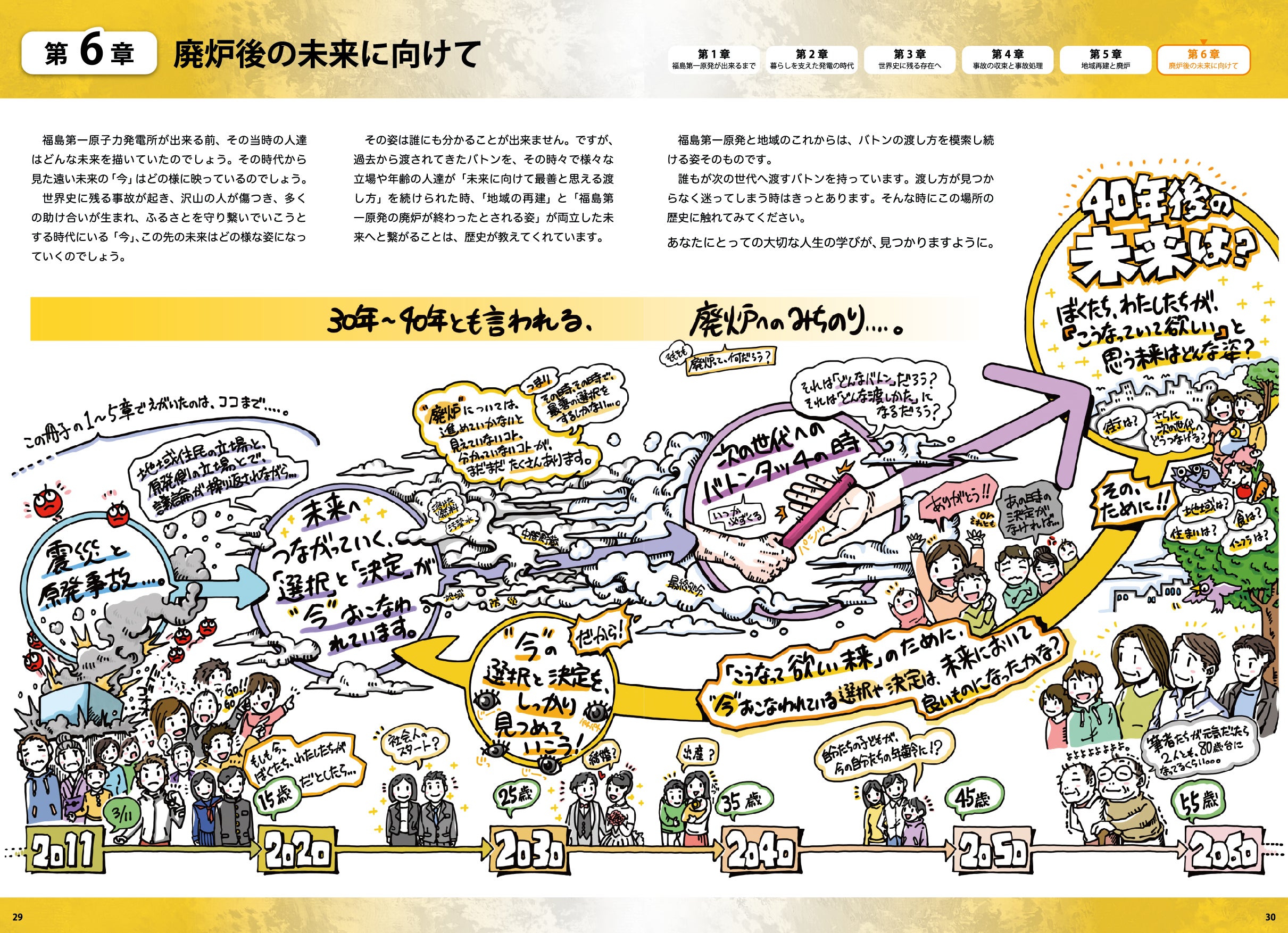 この冊子では、福島第一原発と周辺地域の歴史を扱っています。原発事故前の歴史も含めて未来を考えていくために、東日本大震災と原子力災害が扱われることを、中高生からでもニュートラルに感じられるよう目指しました。