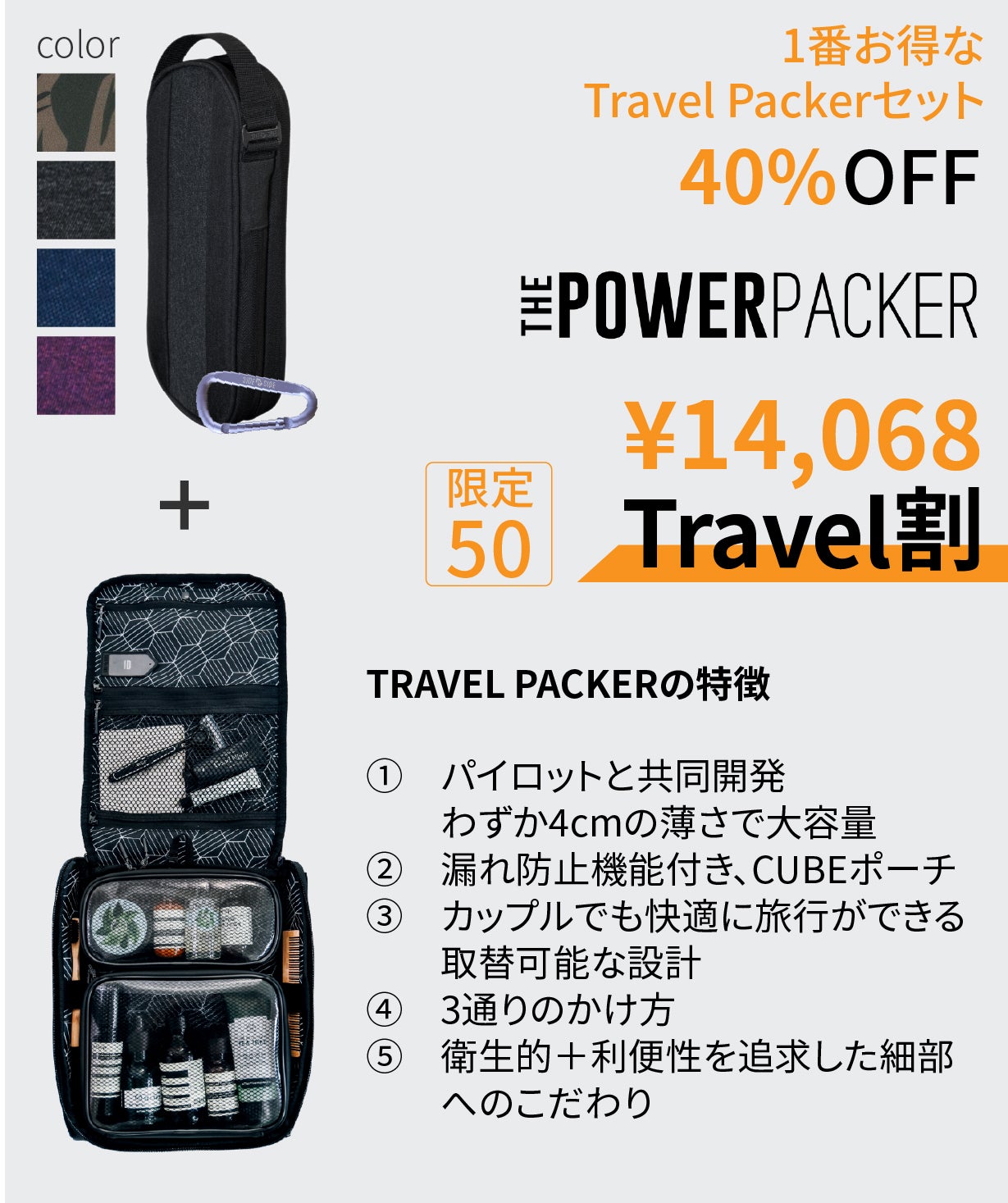 Power Packerは機能的に小物類をわけて収納し、3段構造による圧倒的な収納力によって整理整頓が自然と身につくスマートポーチです。