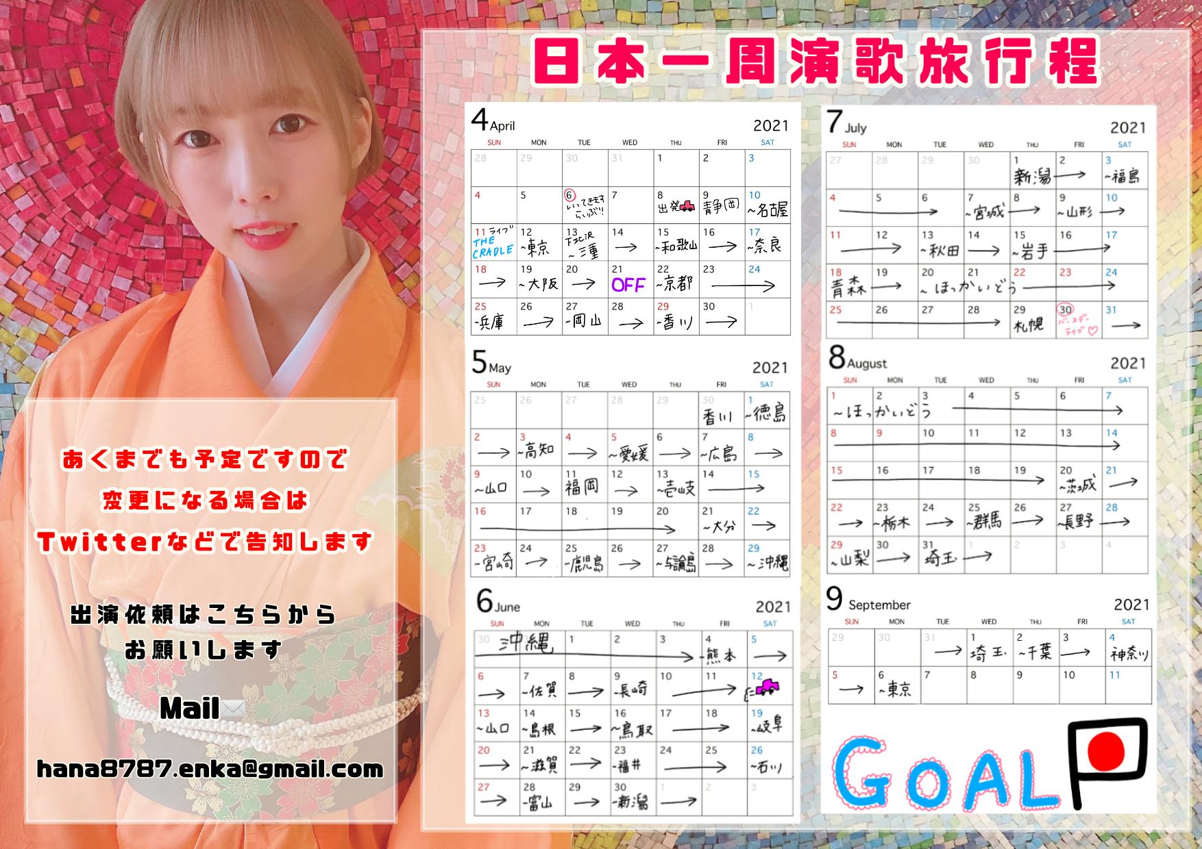 そして日本一周のスケジュールはこちらになります。