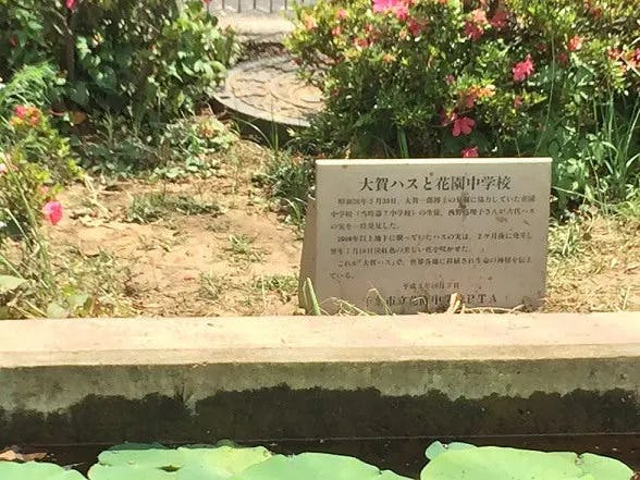 同校には「大賀ハスと花園中学校」という記念碑があります。