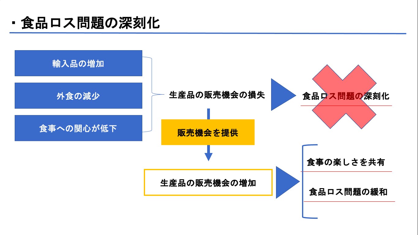 そのため、皆様のお力をお借りして下記3点が行える環境を構築し、【食品ロス】の問題を緩和していこうと考えております。