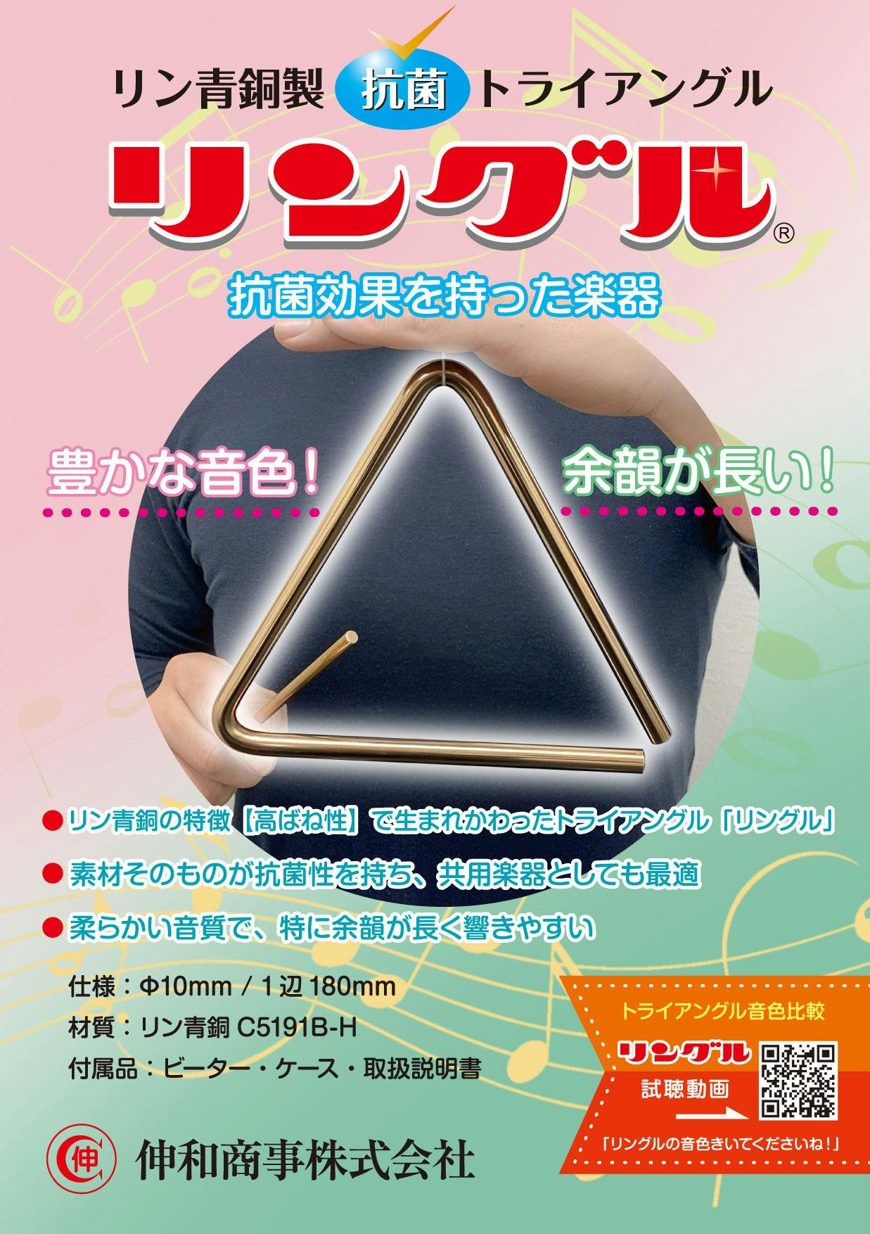 しかし、この『リン青銅トライアングル』は音楽を楽しみたいと思っている人に向けて心を込めて設計しました。