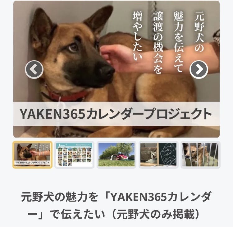元野犬たちの写真を使った「YAKEN365カレンダー」 の制作を通して、元野犬たちの存在、彼等が置かれている現状をもっと多くの人たちに知ってもらいたい!そして世間ではまだまだ知られていない彼等の魅力を発信したい!と考えています。