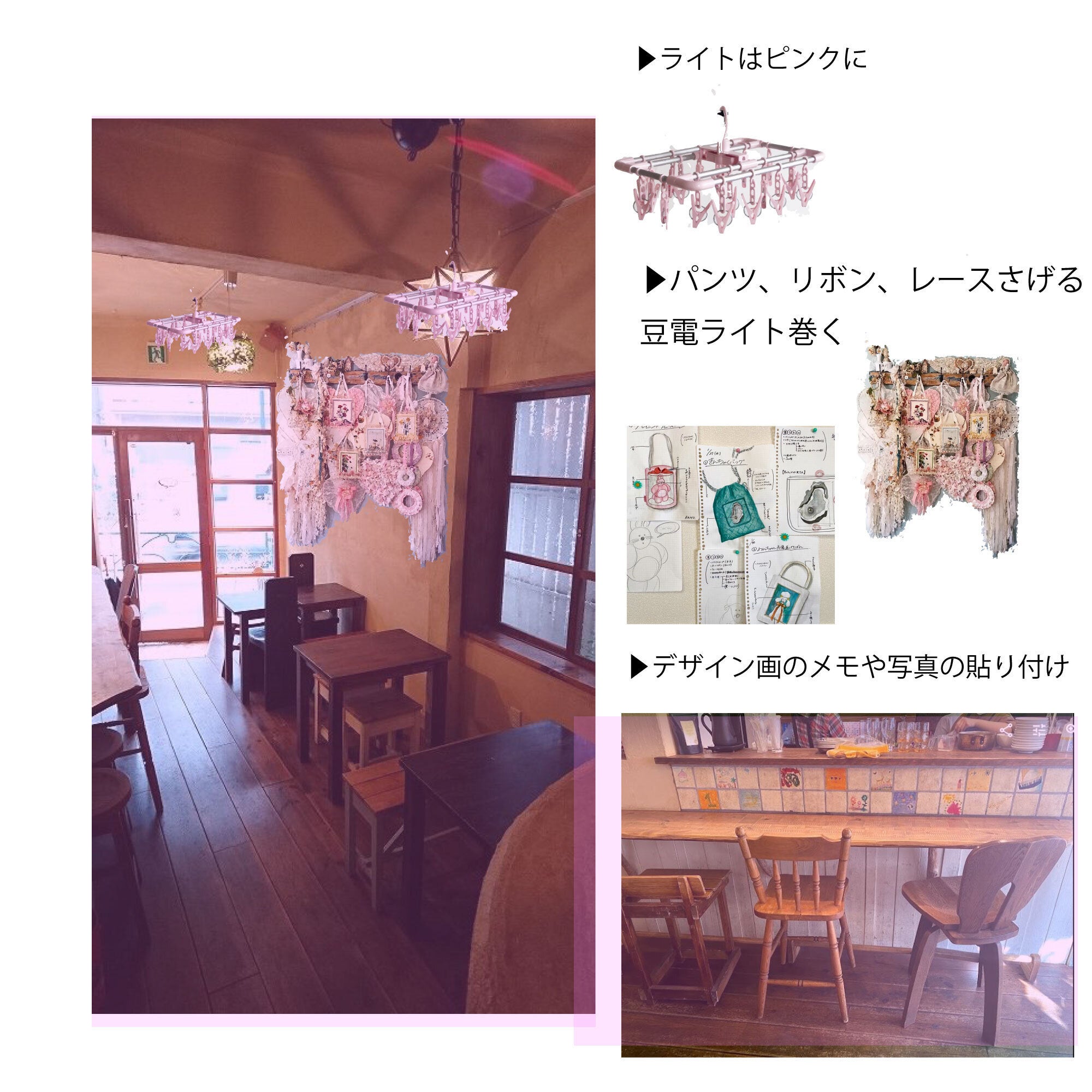 店内の装飾や制服のこだわりはもちろん、おぱんつモチーフのインスタ映えするようなかわいいフードやドリンクを提供します。店内でのグッズの物販も行います。